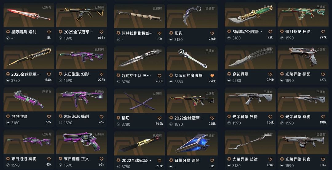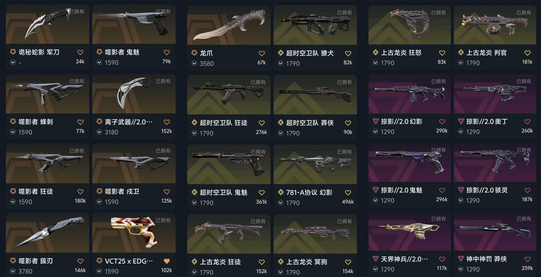 可排10w库存✨超时空卫队套✨上古龙炎套✨25冠军✨22冠军✨光荣异象套✨三菱军刺✨苍龙之刃