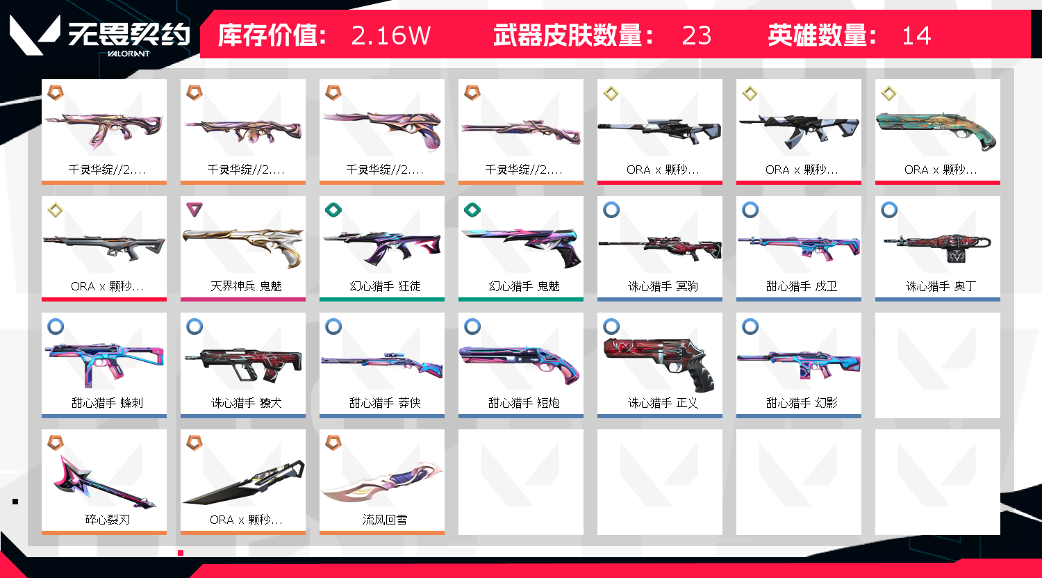 • 皮肤资产价值: 21570