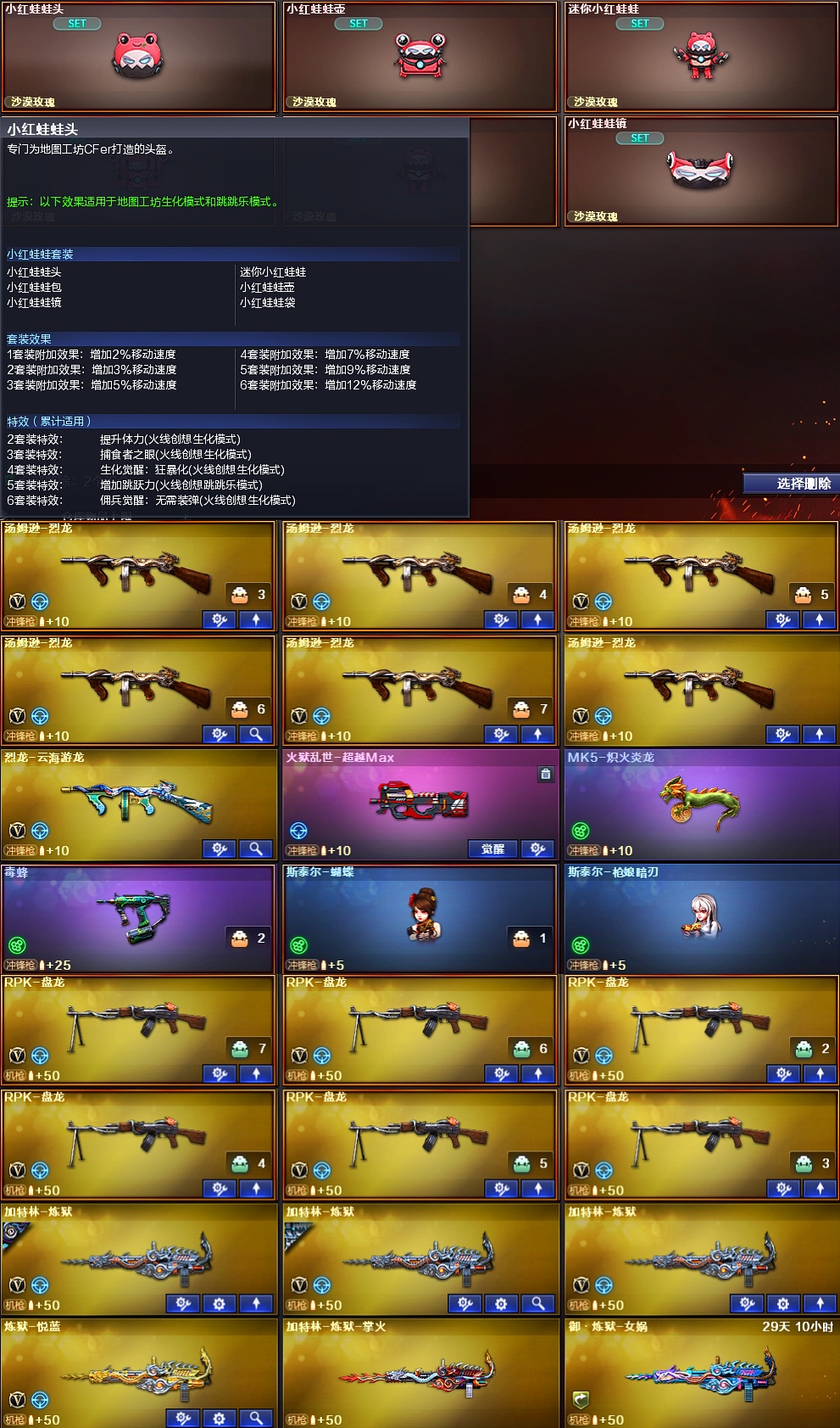 喜欢点点收藏 生化6烈斯泰尔小红蛙蛙套装生化人物;USP-雷暴,炽芒蝶刃,Knife-冠军之刃,沙漠玫瑰,隼,电竞教官-云悠悠,RPK-盘龙,