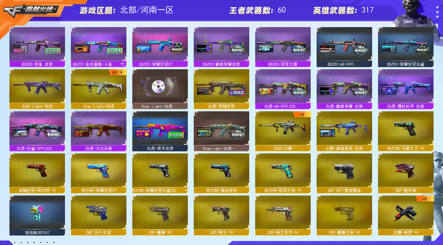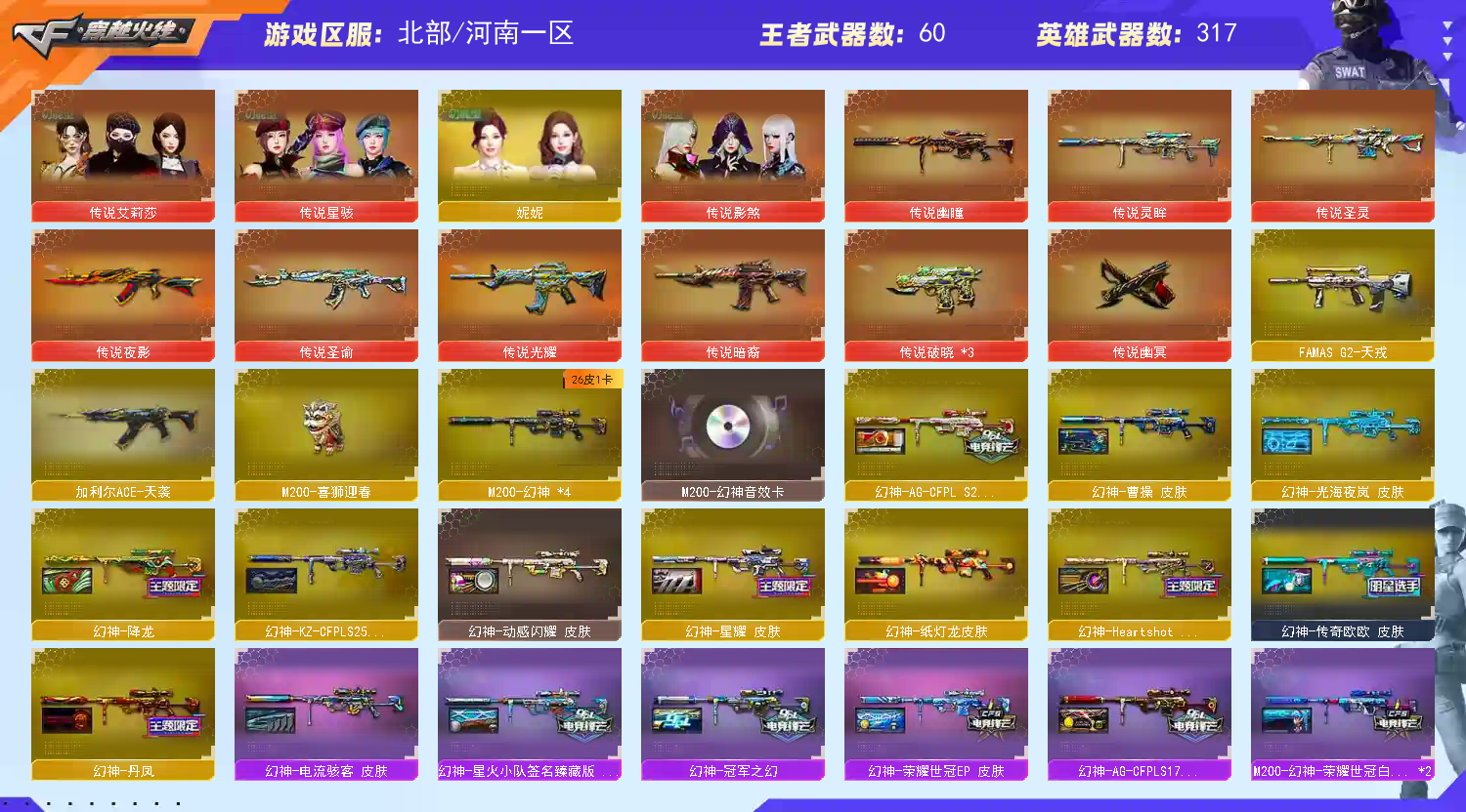 王者云悠悠❤序列号2345❤女主播4语言包❤⑩音效卡❤星神98k❤双面神❤毒蜂❤斗鱼火麒麟❤斗鱼炼狱❤世冠柯尔特1把❤2把usp雷暴❤冠军之特2把❤传说光耀❤传说暗裔❤缺什么细节记得留言我看到就补.❤好玩记得收藏哈❤跪求科技大神求放过此号❤谢谢好人一生平安❤可于北部所有大区同玩❤不懂看大区分布图❤主流光效全齐❤ 幻神:❤王者幻神❤黄忠❤巅峰荣耀❤CFS2022❤青鹤❤丹凤❤宠儿❤周瑜❤AG17冠军❤冠军之幻❤ 音效卡❤火麒麟❤雷神❤极光❤幻神❤裁决❤蔷薇❤白虎❤黑骑士❤黑龙❤毁灭❤ 温馨提示: A.游戏过程中请不要恶意挂机或者不文明发言 B.恶意挂机、顶号等行为将被拉黑无法再次下单 C.进入游戏后中途请勿退出登陆,否则无法再次上号 D.部分账号由于异地登录可能会出现密码错误提示,通常再尝试5-6次后可上号 >>>>>>喜欢本账号请点 ☆收藏☆ 方便下次租用,谢谢光临惠顾;USP-雷暴,柯尔特-无冕之王,USP-雷暴王者,荣耀世冠-柯尔特,柯尔特-荣耀世冠白鲨2023,传说幽冥,柯尔特-冠军之特,