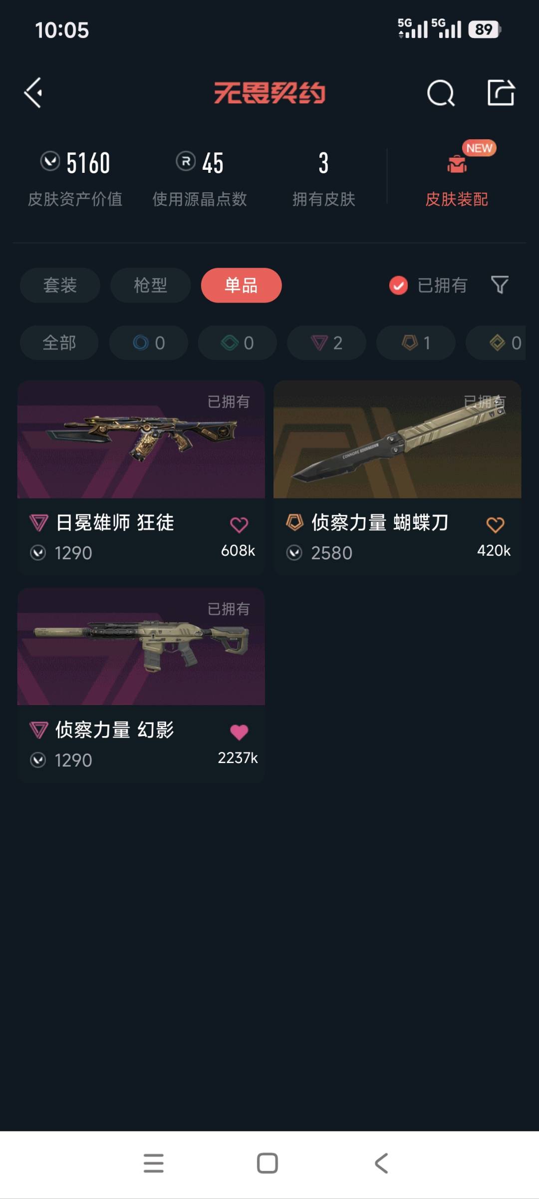 • 皮肤资产价值: 5160