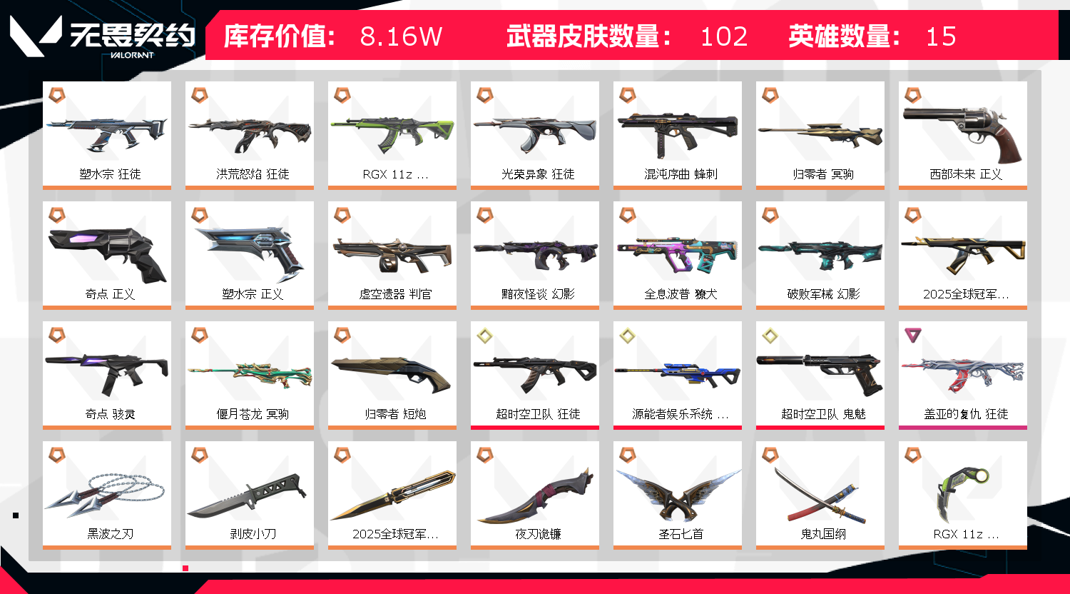 • 武器皮肤数量: 102