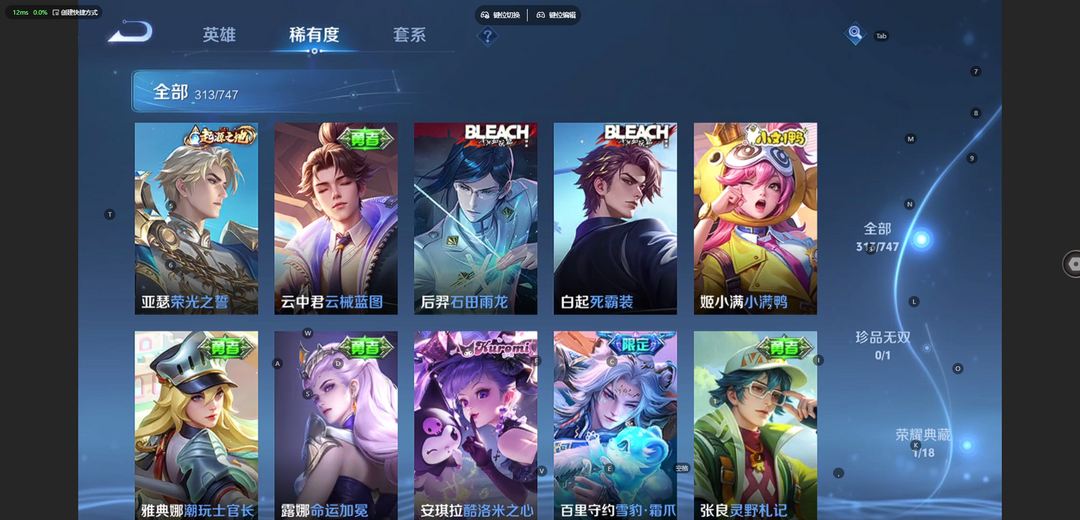 【非云直上】V10★皮肤榜一★539皮满典藏★鲁班时之奇旅会员★虞姬黛羽霜翎星元★吕布白金战神★全能大师★多金标★个性按键