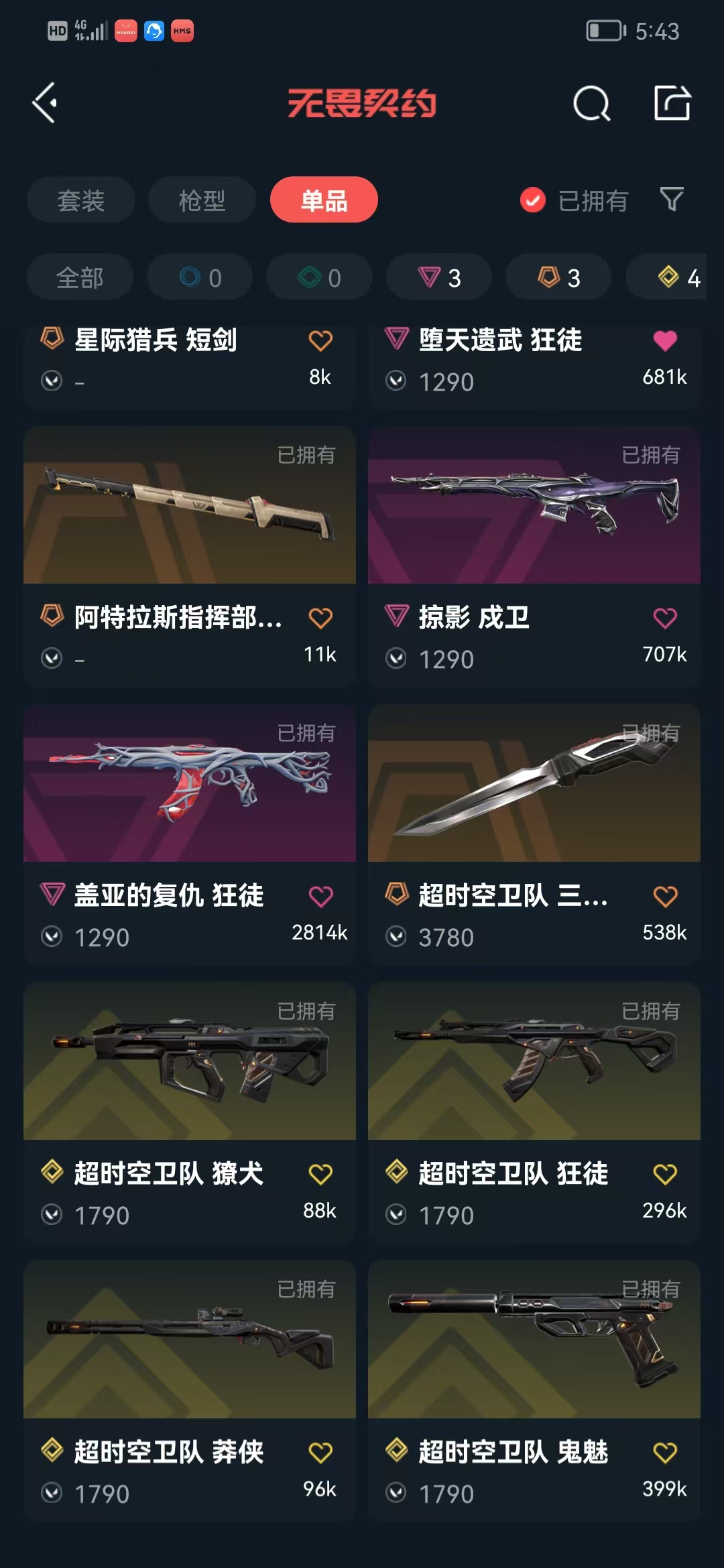 禁炸鱼挂机/永久拉黑💋超时空卫队套装💕盖亚狂徒 堕天遗武狂徒/ 掠影戍卫/甩棍/悠闲猫生幻影