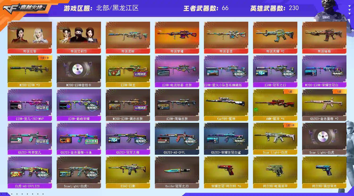 首页 > 租号大厅 > 穿越火线 > 网通区/黑龙江区 > 四防传说女帝+7传说6盘炼狱6烈龙蝴蝶+炽芒蝶刃✅3幻神10件套+雷暴夜魔套✅柯尔特冠军之特+星神幻