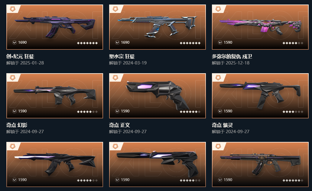 7W秒解2425冠军套莲花套威龙套金克斯手枪超时空创纪元塑水猴子AK显卡爪;艾沃莉的梦之翼 奥丁,威龙之刃,盖亚的复仇 狂徒,混沌序曲 狂徒,塑水宗 狂徒,2024全球冠军赛 幻影,塑水宗 飞将,