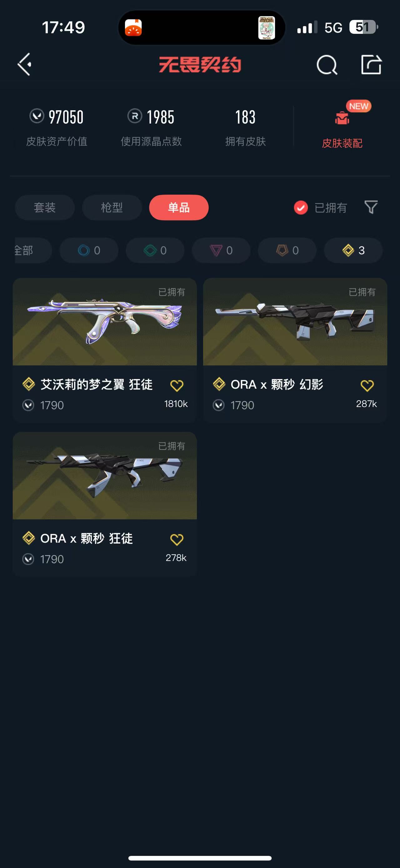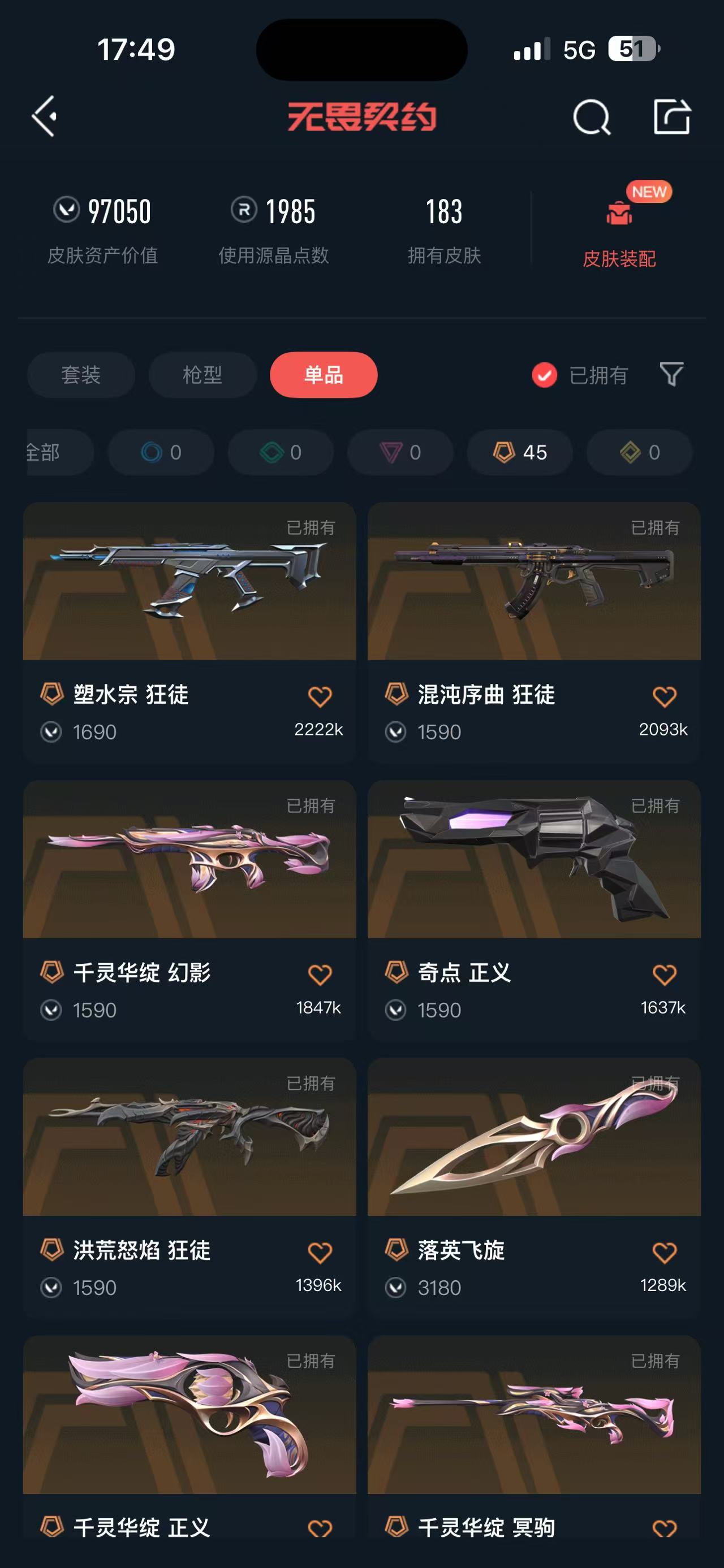 • 皮肤资产价值: 97050
