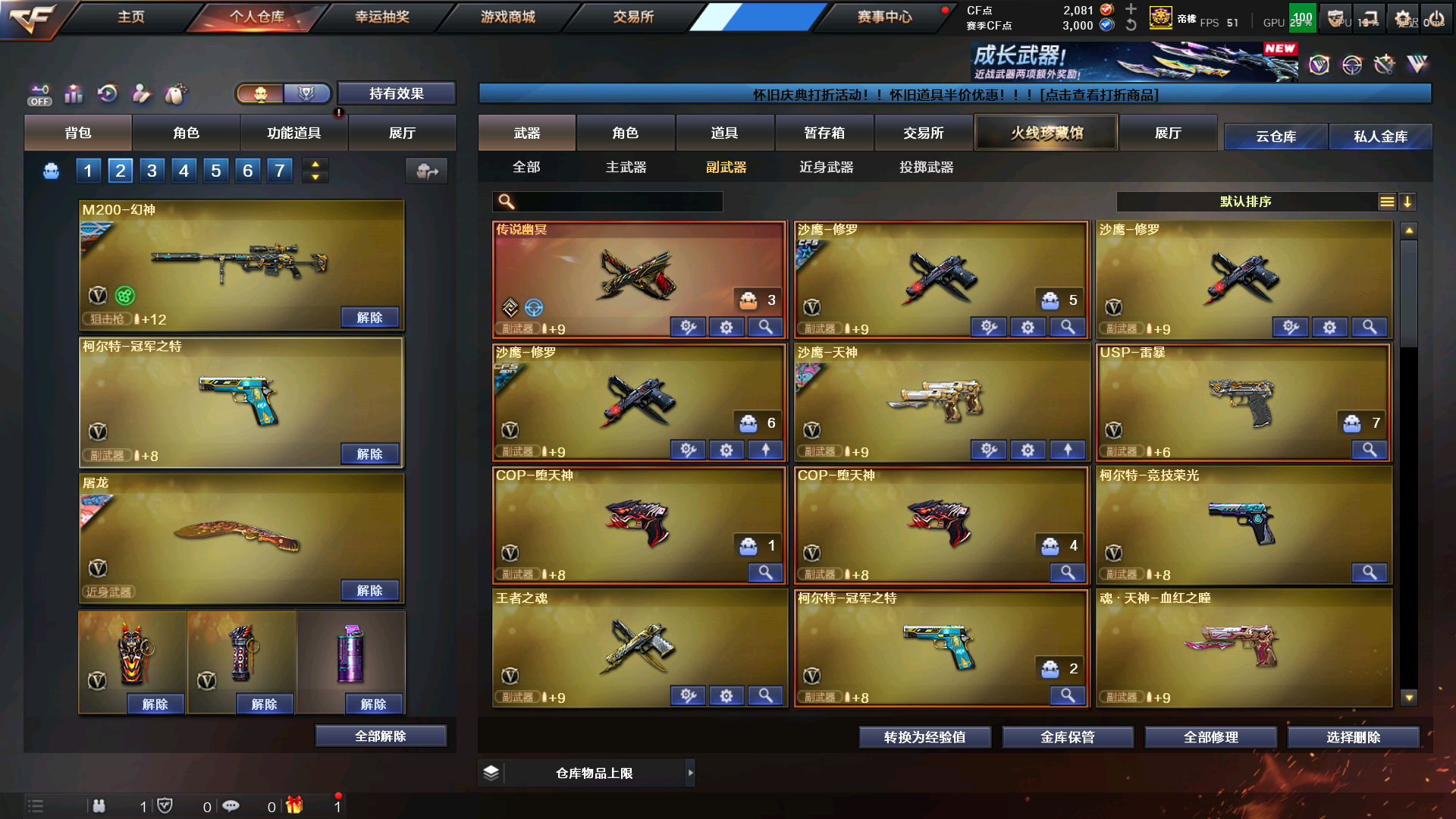极品爆破号9999序列号大炮,;USP-雷暴,传说幽冥,柯尔特-冠军之特,炽芒蝶刃,Knife-冠军之刃,传说女帝,电竞教官-云悠悠,