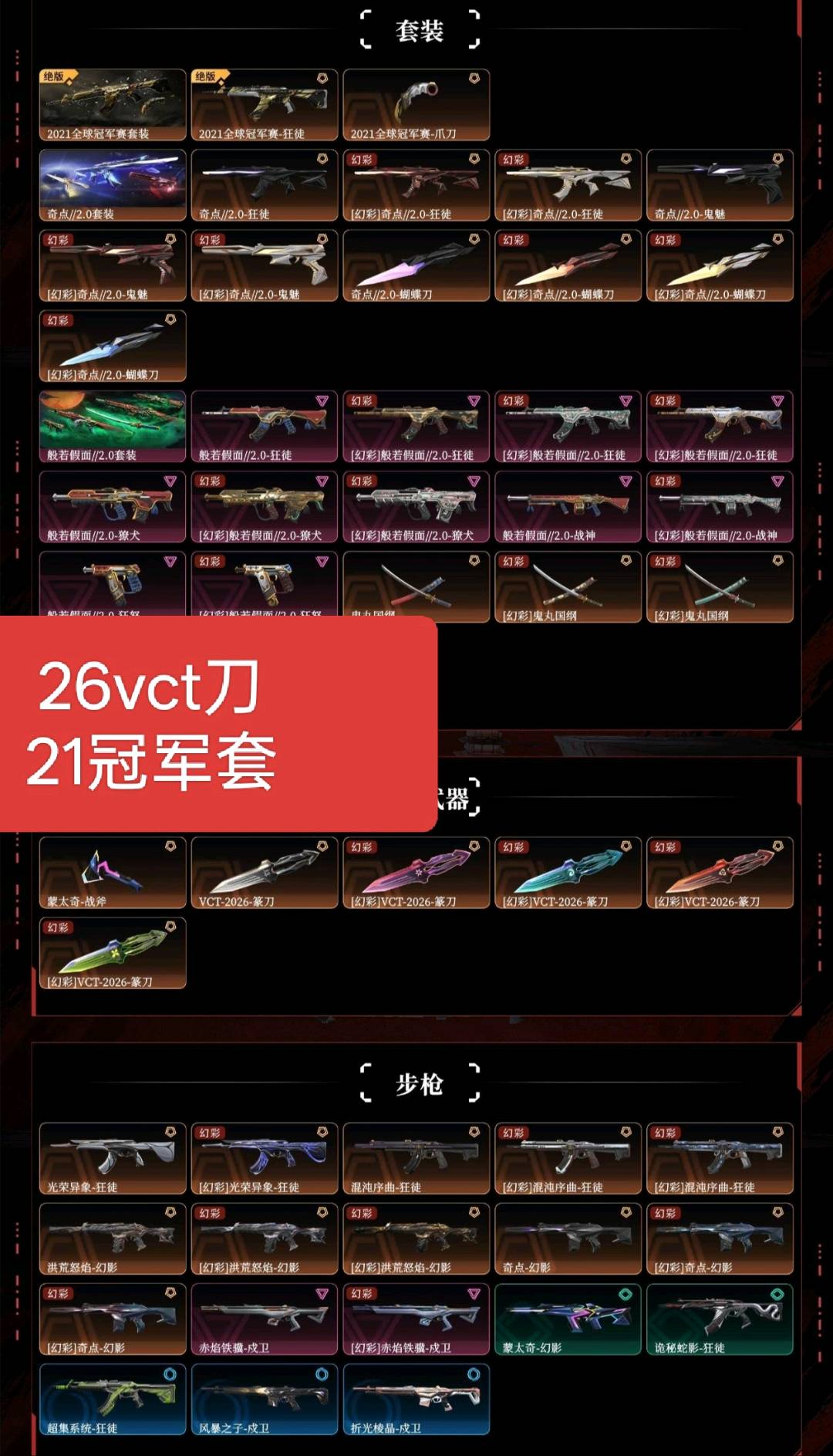 炸鱼丧m✨21冠军套❤️新26VCT篆刀❤️奇点2.0套❤️假面鬼丸套❤️光荣+混沌流脓马年戍卫