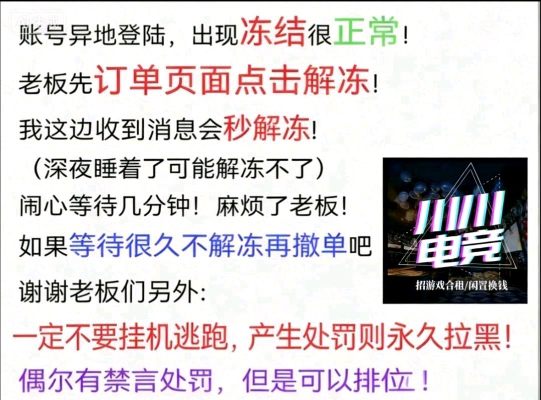 • 温馨提示:禁止使用外挂否则将扣除全部租金和押金,该信息由网络用户发布并对内容负责,GG租号仅是信息发布平台