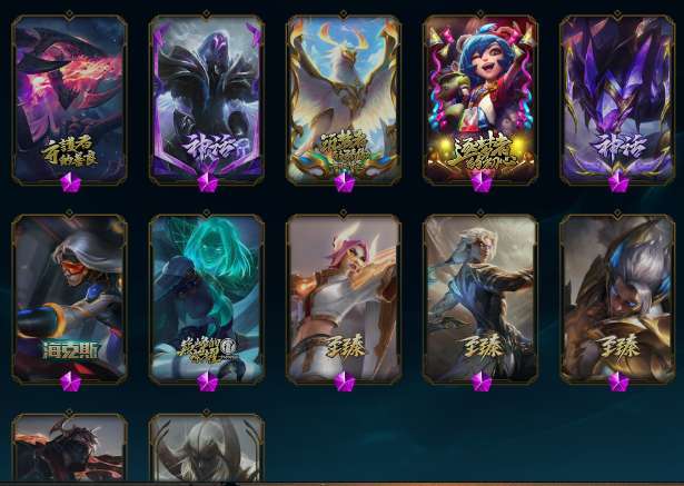 峡谷707原皮 487炫彩 54神话18臻彩 云顶4神话至臻龙的传人李青青花瓷拉克丝兔年棋盘 金克斯李青亚索特殊炫彩新神话多 冰雪节一套 源计划一套玉剑传说泳池