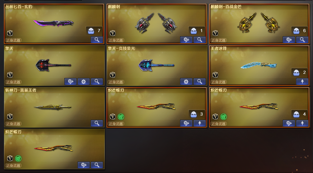 白虎音皮 裁决音皮 星神 玄武 竞技荣光 天戎 八面 蝴蝶刀 黄狮子 蝴蝶 2盘5烈