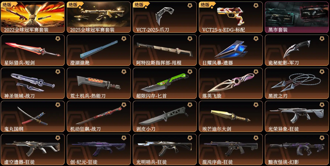 可排位✅顶级10W库存✅25冠军套⭐22冠军套⭐VCT爪刀⭐黑波之刃⭐黑市套⭐塑水宗⭐光明哨兵⭐般若