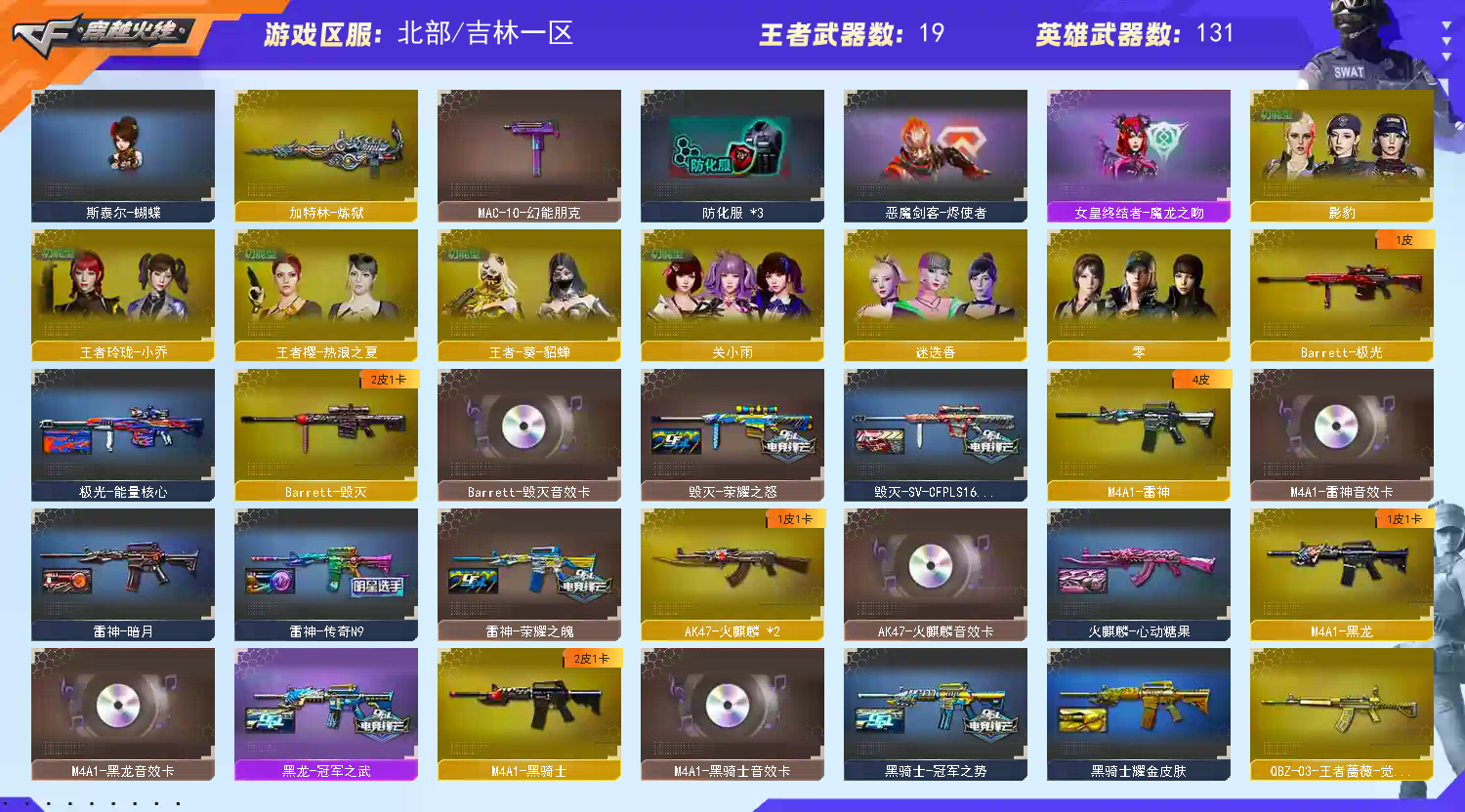 ★收藏好评! 由于异地登录保护机制,部分客户在使用客户端自动上号时会出现密码错误,注意本号密码不会错误,请多尝试5-6次!本账号已经过虚拟财产确认,请各位科技大神高抬贵手。请素质租号,文明游戏,谢谢大家配合!!;USP-雷暴,荣耀世冠-柯尔特,传说艾莉莎,QBZ03-金色蔷薇,G36C-幻影,M200-幻神,Scar Light-白虎,
