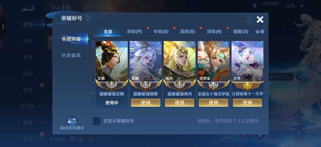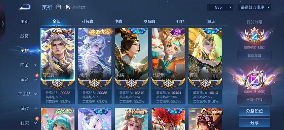 巅峰千强964名闪电框⭐️3月正式服3大国嫦娥海月女娲在榜⭐️历史巅峰大国中路⭐️可排位禁巅峰