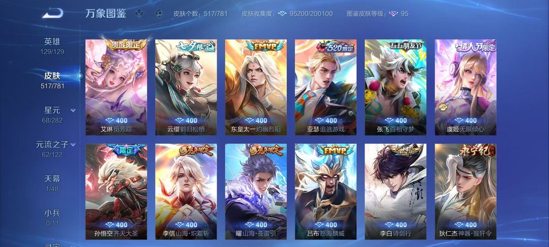 V11✨780皮肤✨马年全皮✨颠倒童话✨千魇归渊✨无相✨神罪✨山海经天机白泽✨全套死神联动✨全套穆夏✨馥梦繁花✨美神临世✨全荣耀水晶✨全无双