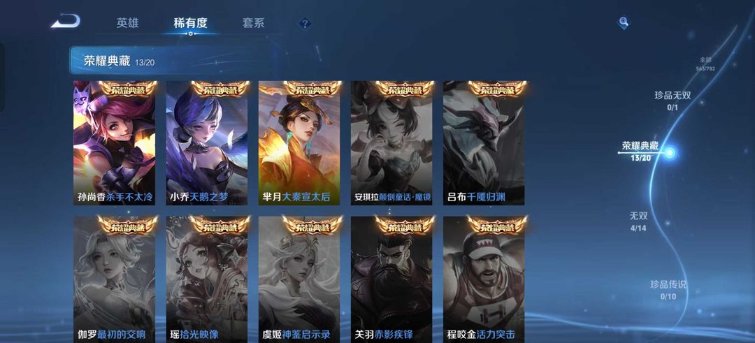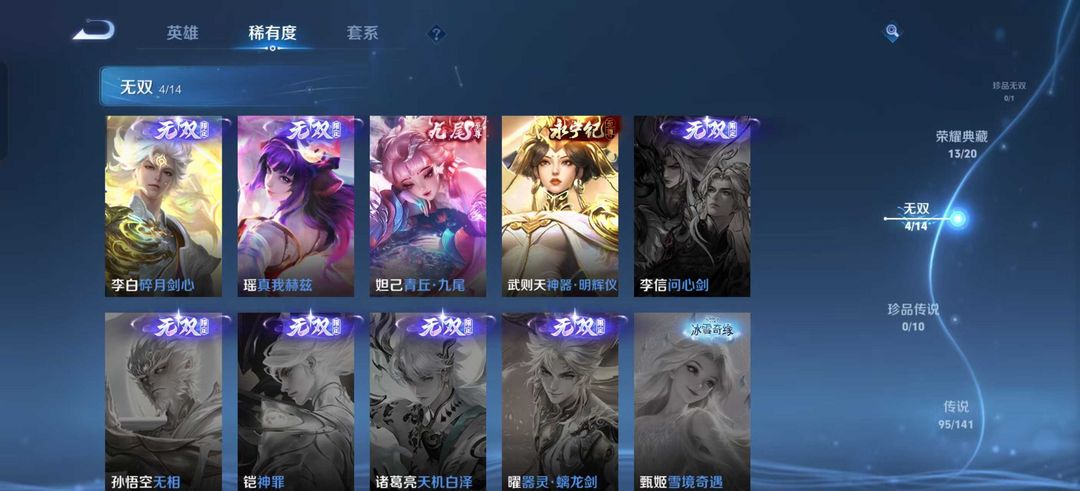巅峰开⭐563皮V10可共享皮肤⭐13荣耀典藏⭐4无双⭐多省标⭐幻阙歌⭐星域神启⭐全息碎影