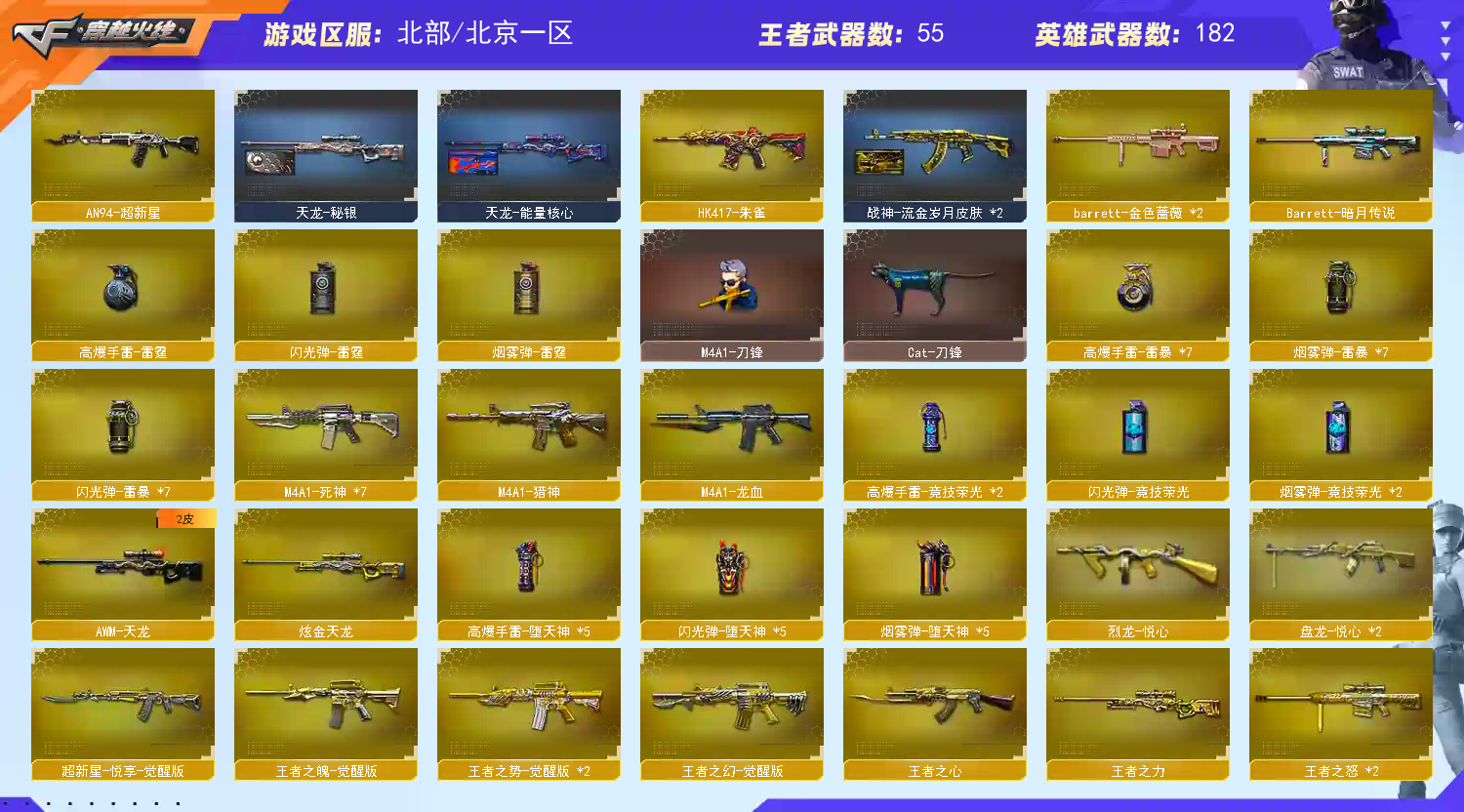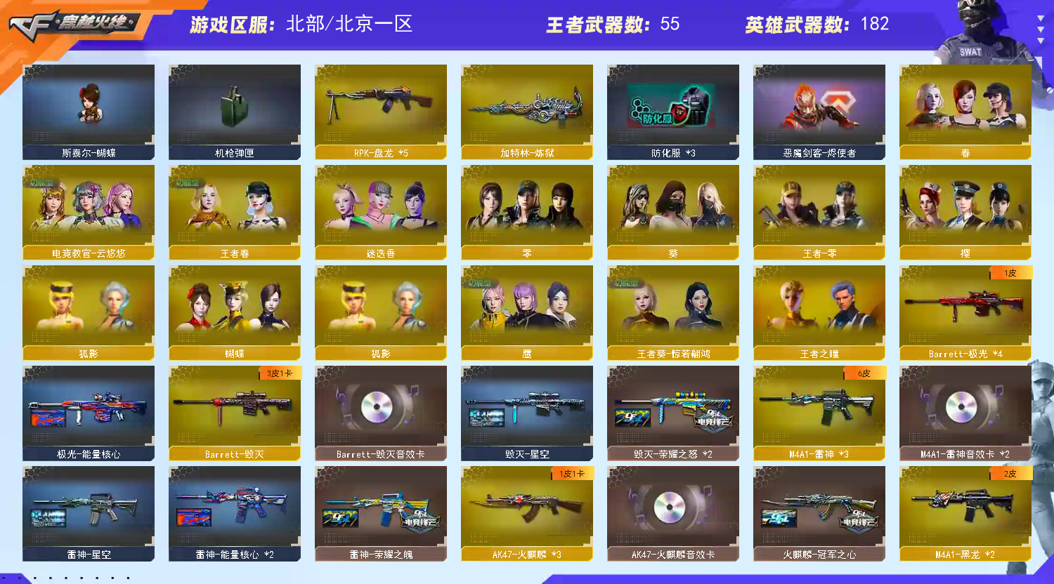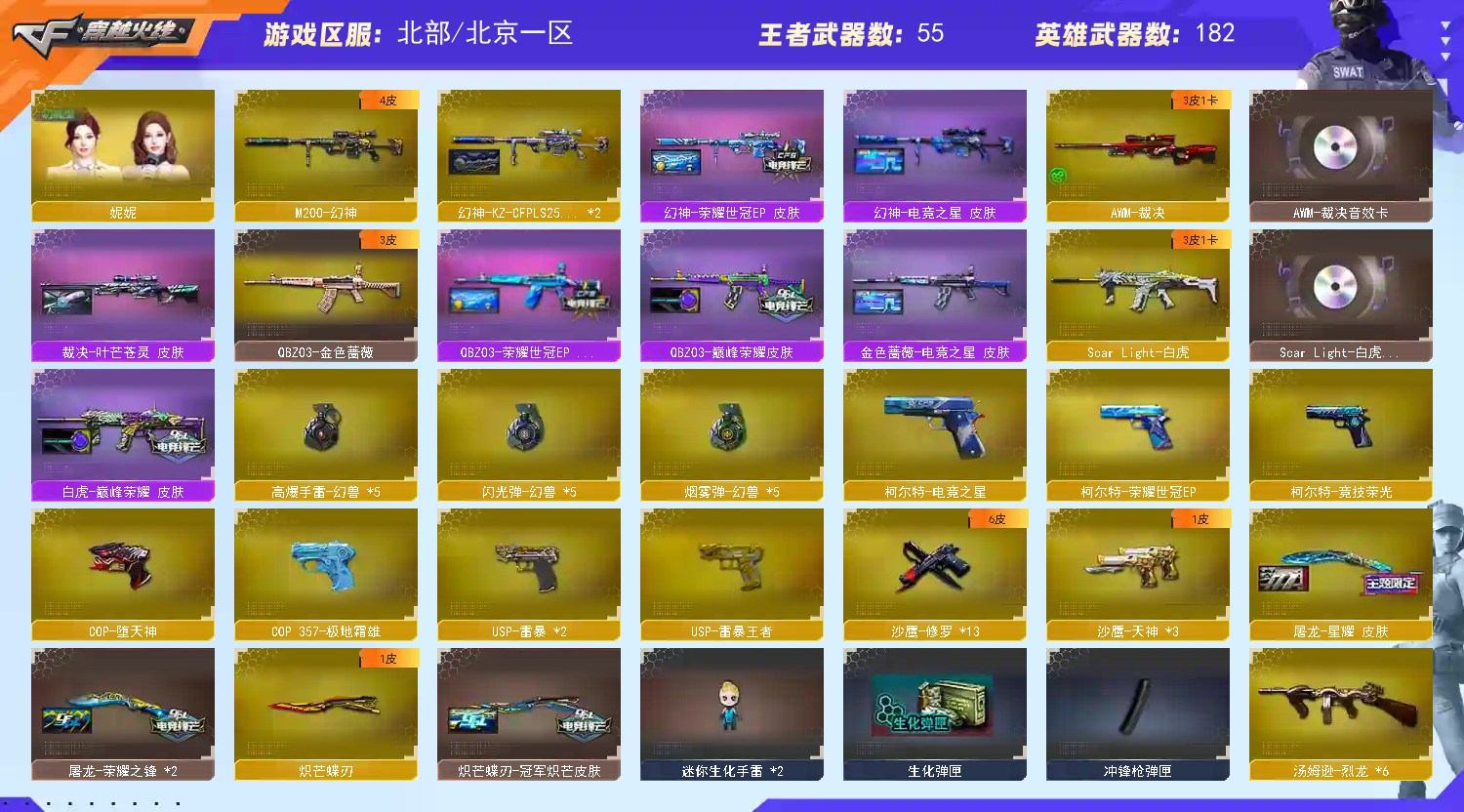 首页 > 租号大厅 > 穿越火线 > 网通区/北京一区 > 5幻兽|幻神KZ/EP3皮|裁决3皮带卡|极品7副手|白虎QBZ都带皮|妮妮鹰春|退排位永久拉黑
