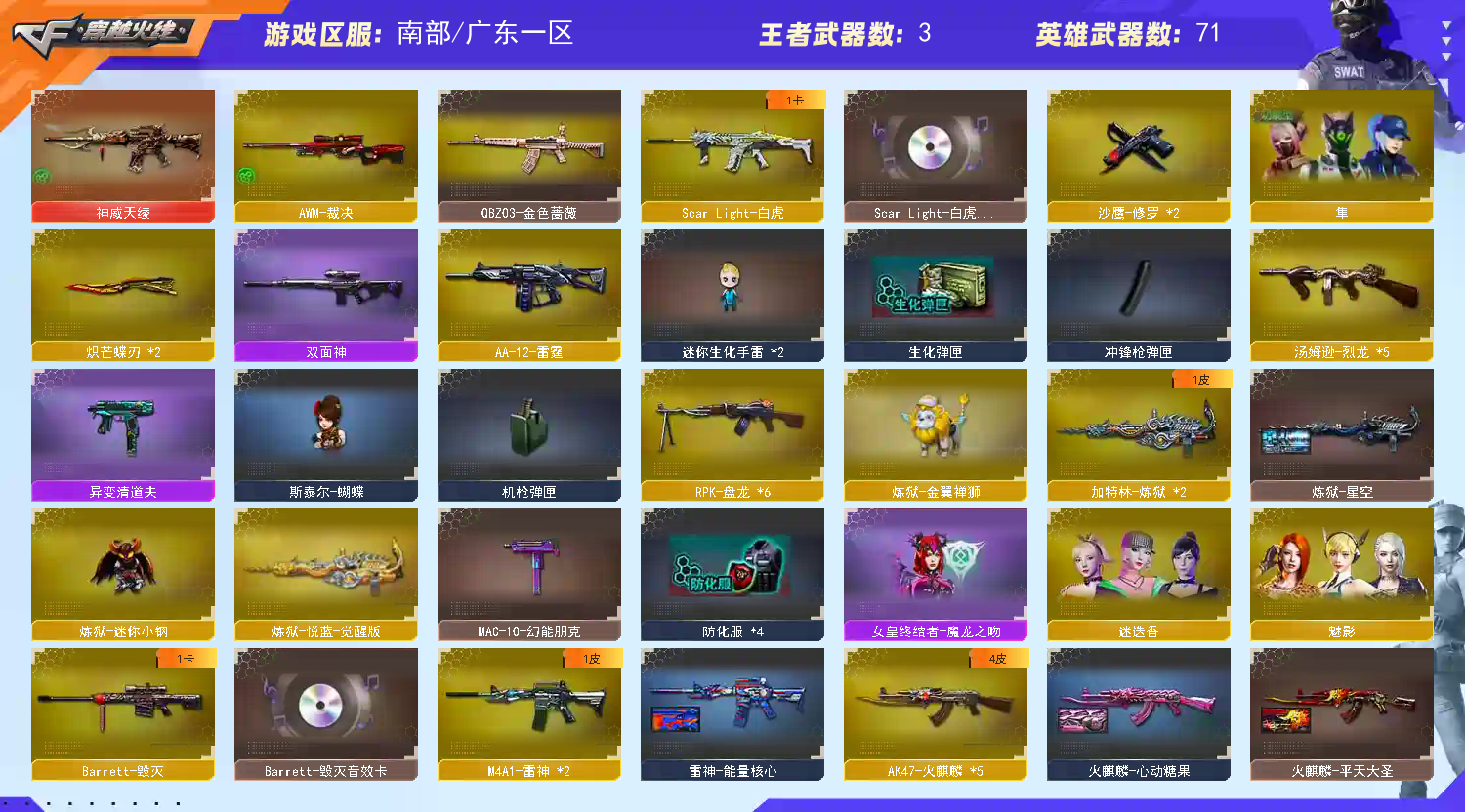 • 游戏区服:穿越火线 / 南部 / 广东一区
