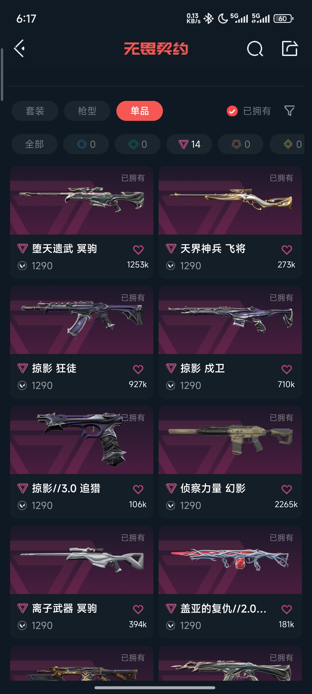 • 武器皮肤数量: 60