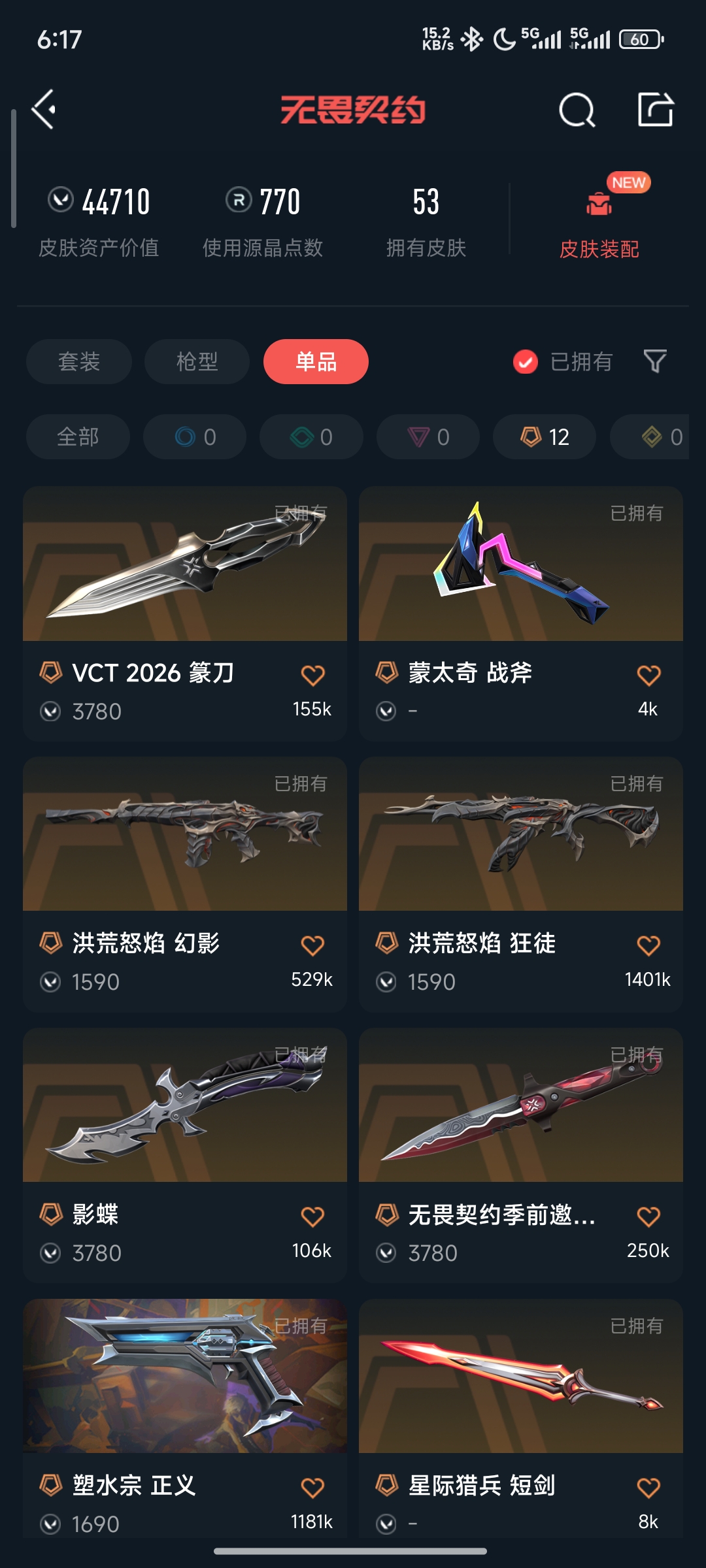 • 皮肤资产价值: 44710