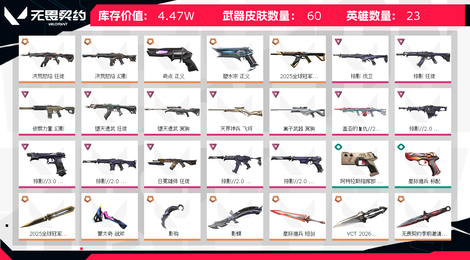 首页 > 租号大厅 > 无畏契约-wegame > wegame/wegame > 可排位 🚫禁止暴力炸鱼开挂 英雄21 武器皮肤数量53