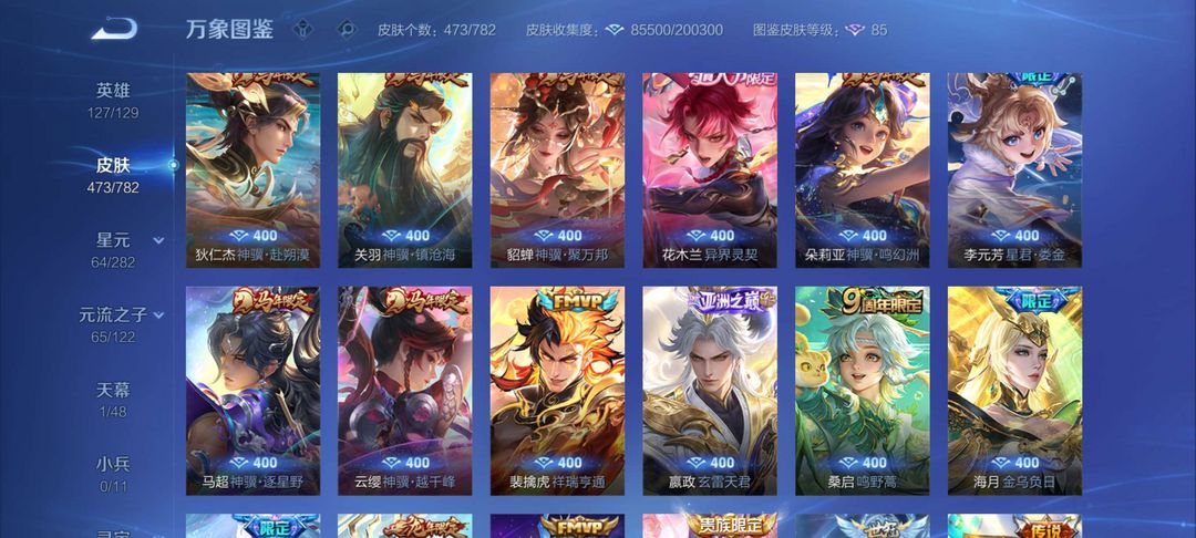 V10、550皮14水、吕布典藏-千魇归渊、云缨-神骥·越千峰、怪盗基德、伽罗星传说红枫、瑶典藏拾光映像、冥王哈迪斯、、龙年限定、齐天大圣