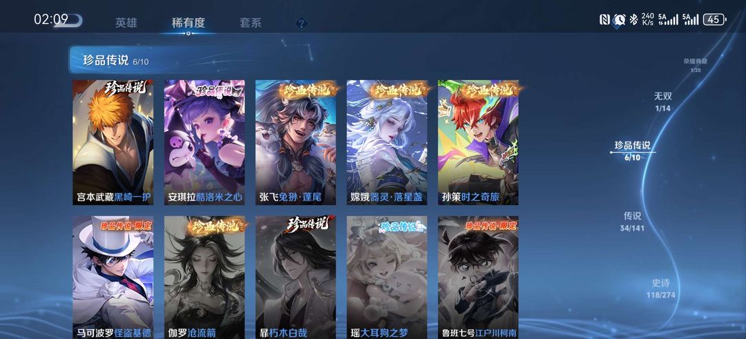款含荣耀典藏1无双1珍品传说6传说34史诗118勇