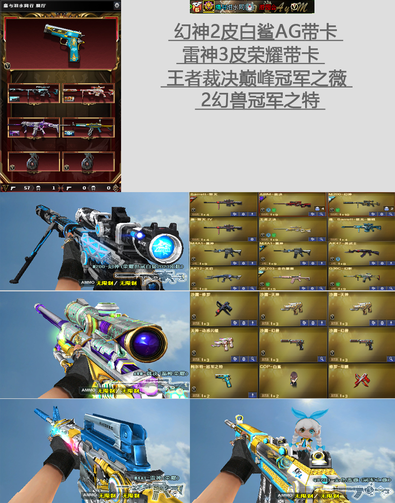 恶意退排位拉黑;柯尔特-冠军之特,QBZ03-金色蔷薇,G36C-幻影,M200-幻神,