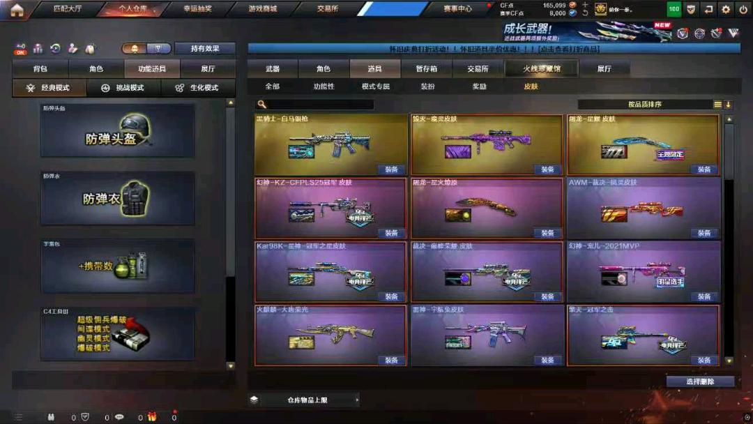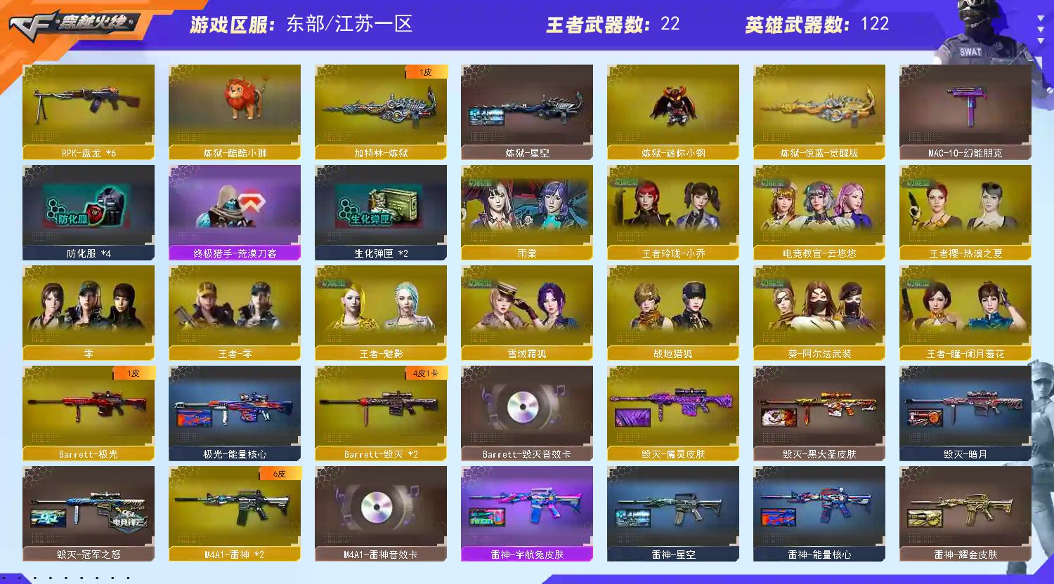 usp神功天巧,cop幻灵,柯尔特白鲨2023;柯尔特-荣耀世冠白鲨2023,炽芒蝶刃,电竞教官-云悠悠,传说艾莉莎,RPK-盘龙,QBZ03-金色蔷薇,G36C-幻影,