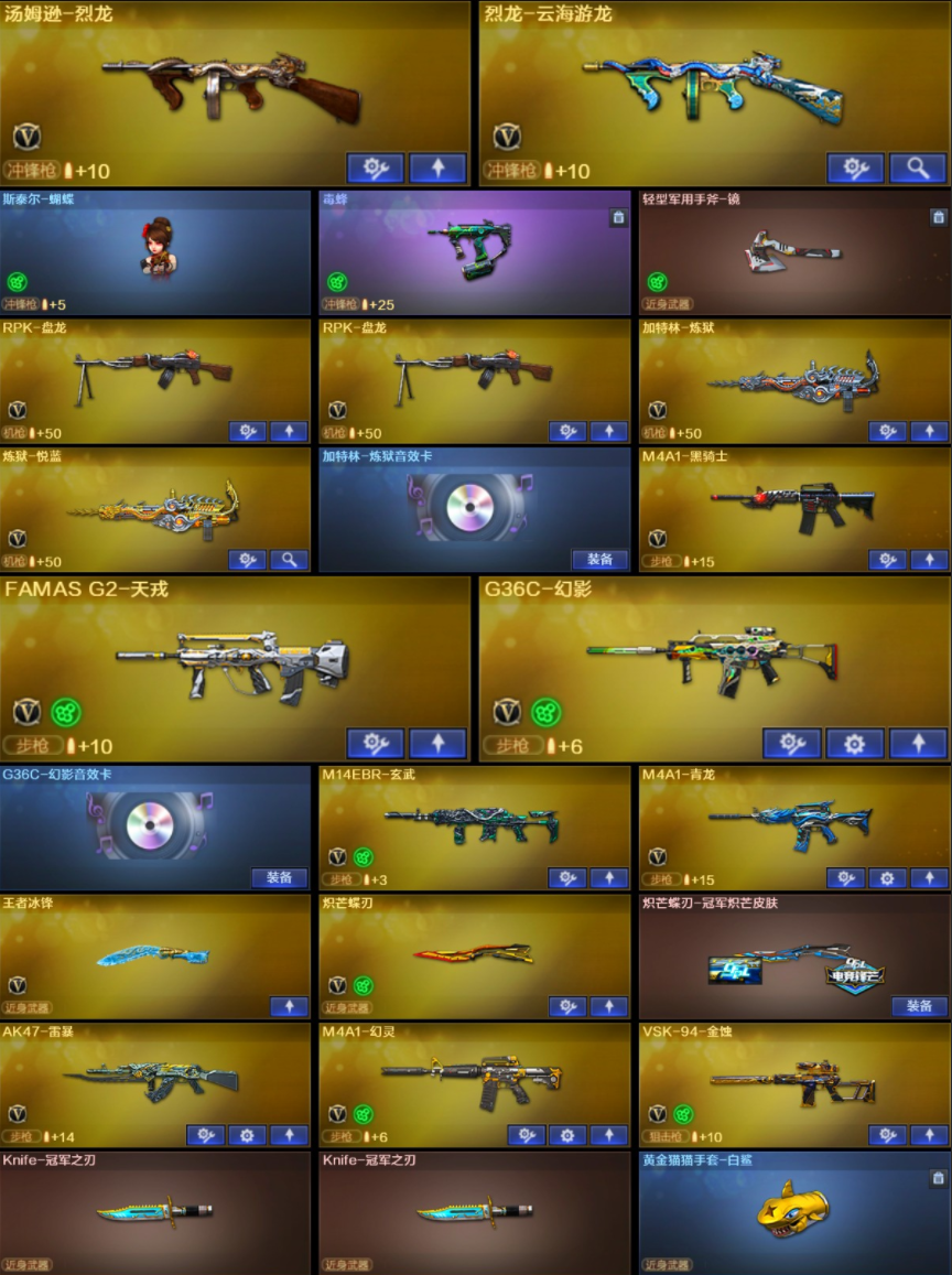 传说艾莉莎/满配9把副手/KZ幻神三件套10皮/星神3皮三件套/裁决三件套/法玛斯/G36幻影双冠刃