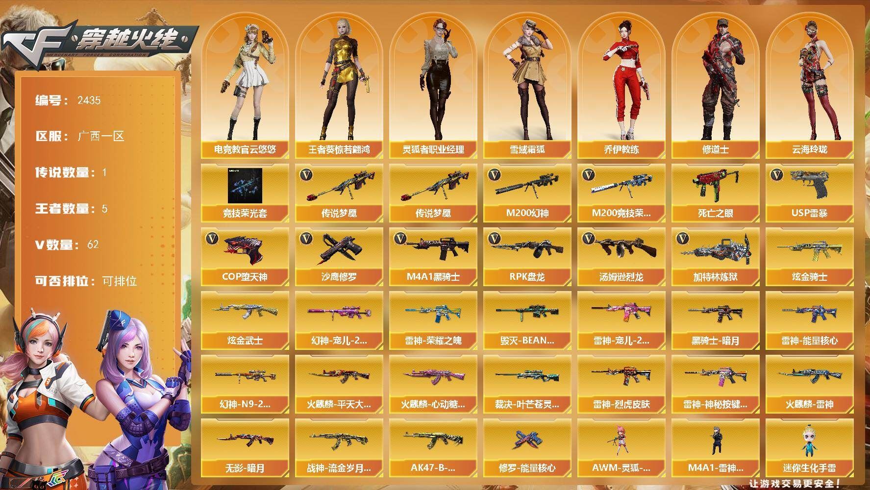 • 游戏区服:穿越火线 / 电信区 / 广西一区