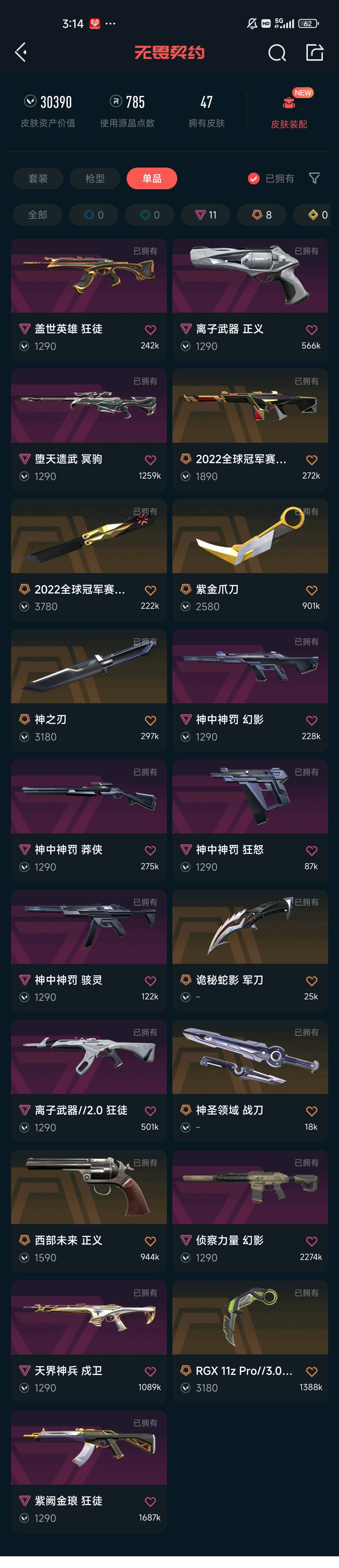 • 皮肤资产价值: 30390
