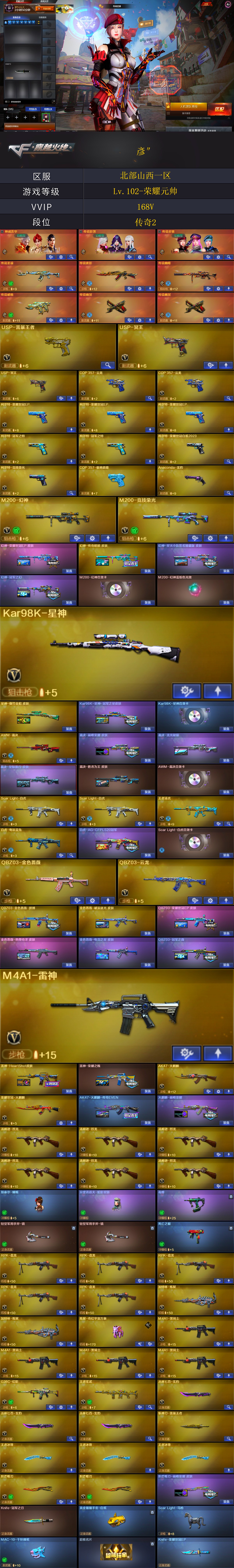 【温馨提示:订单时间快到了不要再开排位赛】 【稀有武器】:传说夜影/传说幽瞳/传说破晓/传说幽冥(2)/M200-幻神/Kar98K-星神/G36C-幻影/ScarLight-白虎(2)/柯尔特-竞技荣光/COP357-云龙(2)/柯尔特-荣耀世冠白鲨2023/柯尔特-冠军之特(2)/金色蔷薇-古蛇迷踪/QBZ03-云龙/QBZ03-金色蔷薇/AK47-火麒麟/M4A1-雷神(3)/M4A1-黑骑士(4)/AK47-黑武士/荣耀世冠-火麒麟/白虎-电玩蓝兔/Barrett-毁灭/AWM-裁决/M200-竞技荣光/RPK-盘龙(5)/加特林-炼狱(2)/汤姆逊-烈龙(6)/AA-12-雷霆/炽芒蝶刃(2)/斩神刀-雷暴/擎天-竞技荣光(6)/云龙扇 【王者武器】:王者之力-觉醒版 【热门角色】:传说影煞/电竞教官-云悠悠/关小雨/华/隼/奇洋探员/蛇隐宗/空/潘多拉-X/兔囡囡/潘多拉 【热门音效卡】:M200-幻神音效卡/Kar98K-星神音效卡/AWM-裁决音效卡/Scar Light-白虎音效卡/Barrett-毁灭音效卡/M4A1-黑骑士音效卡 【热门皮肤】:幻神-传奇欧欧皮肤/幻神-星火小队签名臻藏版皮肤/幻神-冠军之幻/裁决-巅峰荣耀皮肤/龙啸-巅峰荣耀皮肤/雷神-HeartShot皮肤/金色蔷薇-破浪逐光皮肤/擎天-傲竹金蛇皮肤/星神-傲竹金蛇皮肤/炼狱-末日审判皮肤/金色蔷薇-热带奇洋皮肤/Kar98K-星神-冠军之星皮肤/屠龙-荣耀世冠AG(2)/火麒麟-巅峰荣耀/QBZ03-冠军之薇/屠龙-破浪逐光皮肤(2)/裁决-流光秘银/白虎-AG-CFPLS20冠军/屠龙-巅峰荣耀皮肤(2)/AK47-火麒麟-传奇EVEN/黑骑士-AG-S4冠军典藏/屠龙-荣耀之锋(2)/屠龙-春桃皮肤/雷神-荣耀之魄 【其他亮点】:斯泰尔-蝴蝶/Knife-冠军之刃/毒蜂/VEPR-12-金魔/宙斯权杖/Scar Light-马枪/USP-铃狮送福/黄金猫猫手套-白鲨/烟雾弹-荣耀世冠白鲨2023/超核名片 (截图展示段位不代表实际段位,如赛季更新等不可抗拒因素发生变化,其余道具看截图或咨询客服);USP-雷暴王者,柯尔特-荣耀世冠白鲨2023,传说幽冥,柯尔特-冠军之特,炽芒蝶刃,Knife-冠军之刃,传说影煞,