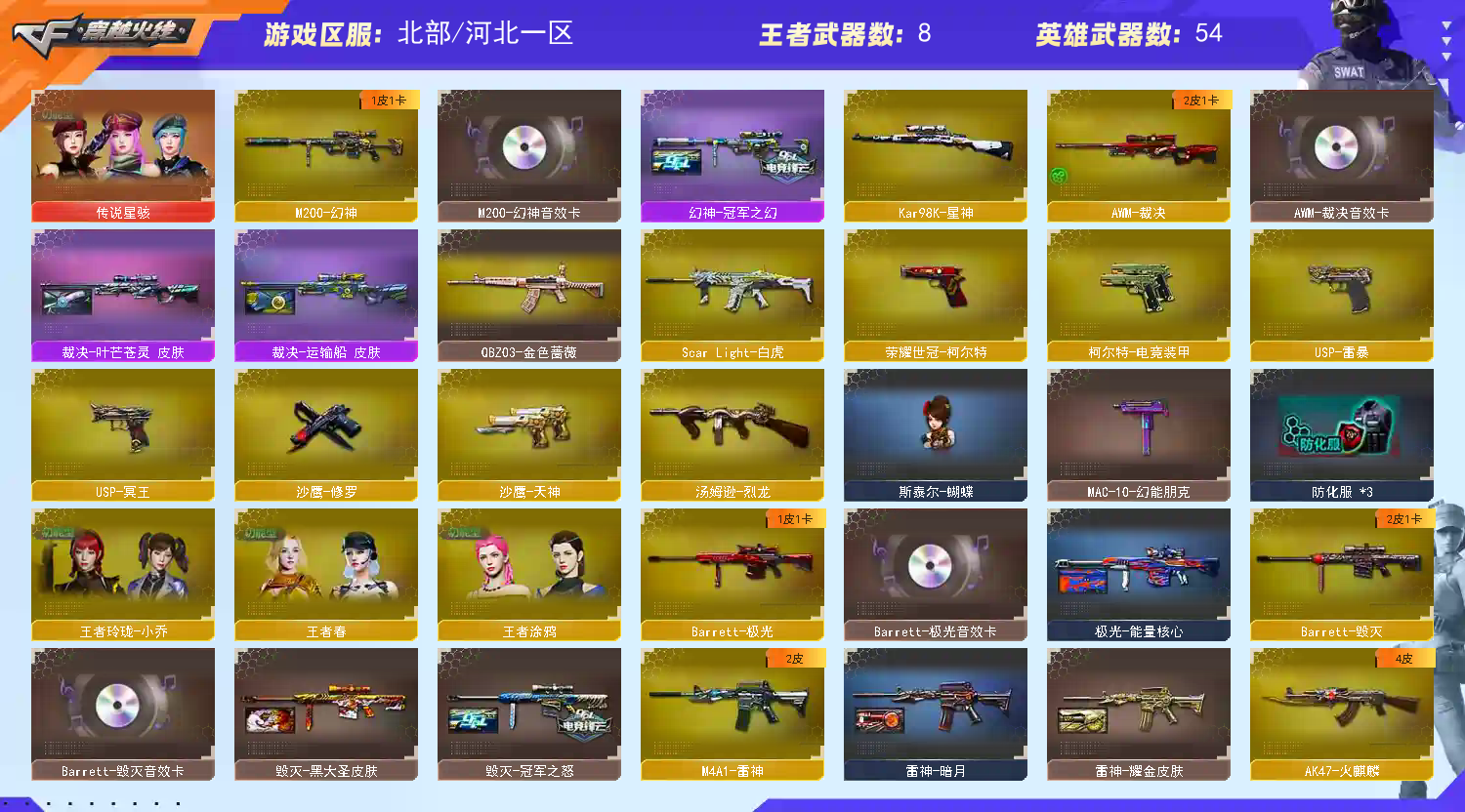 首页 > 租号大厅 > 穿越火线 > 网通区/河北一区 > ✨爆破全装✨传说星骇✨冠军之幻 幻神带卡✨裁决三件套✨白虎QBZ多皮带卡✨荣耀柯尔+雷暴|满副满雷✨