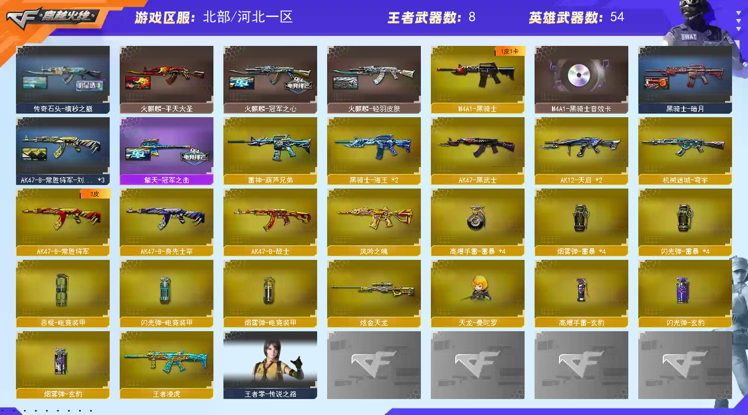 • 游戏区服:穿越火线 / 网通区 / 河北一区