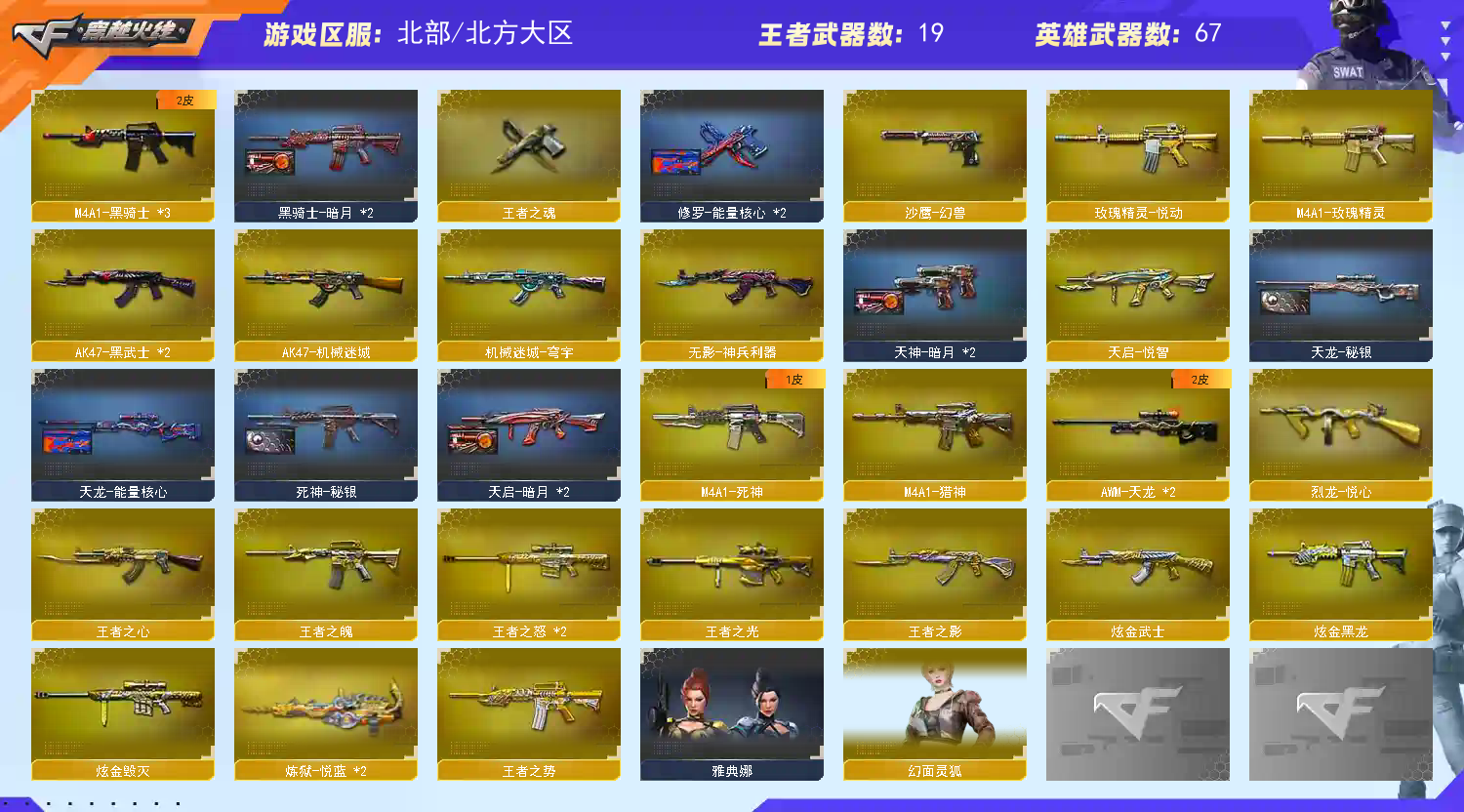 北部幻兽裁决蔷薇+6烈+孤影+毁灭音效卡+雷神荣耀之魄毁灭荣耀之怒;QBZ03-金色蔷薇,