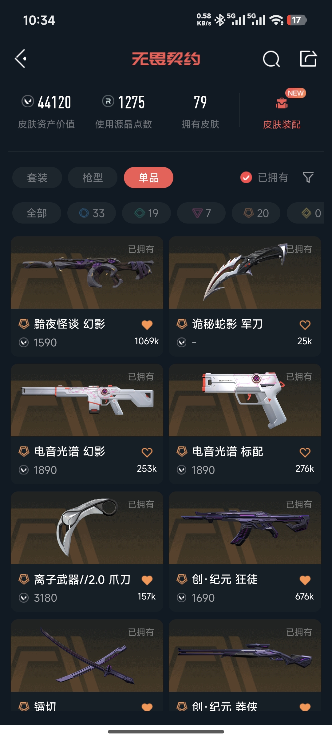 • 皮肤资产价值: 44120