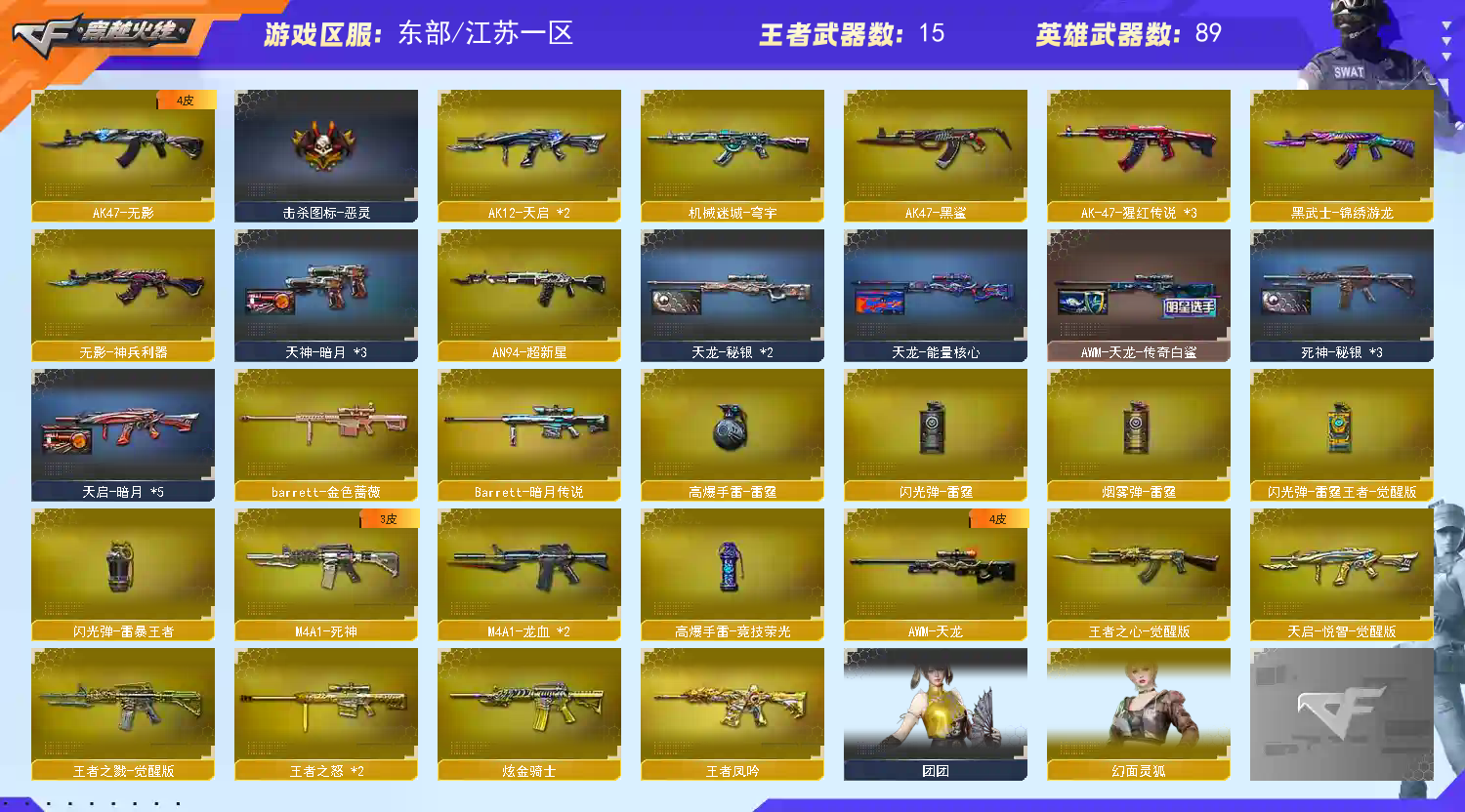 • 游戏区服:穿越火线 / 电信区 / 江苏一区