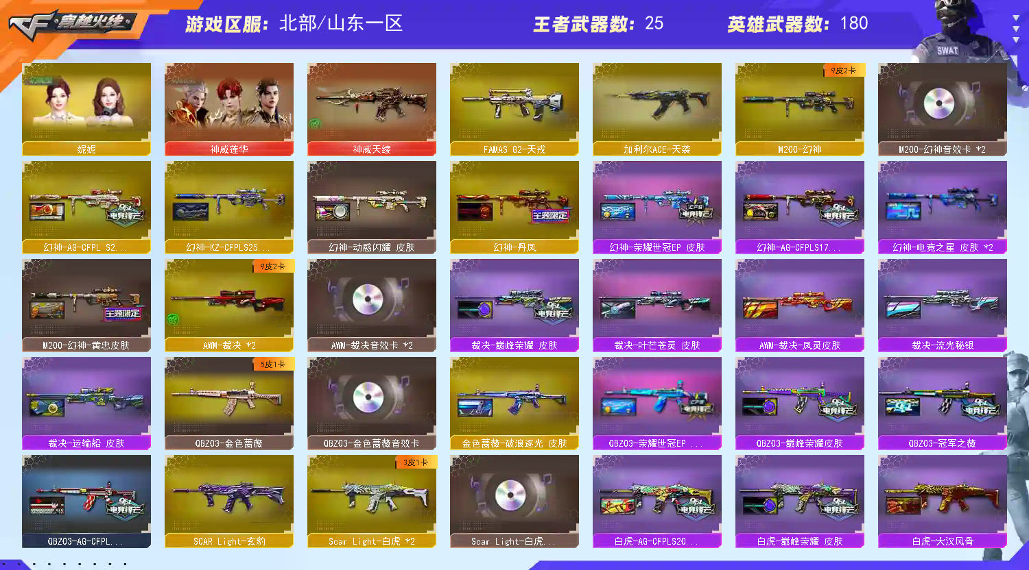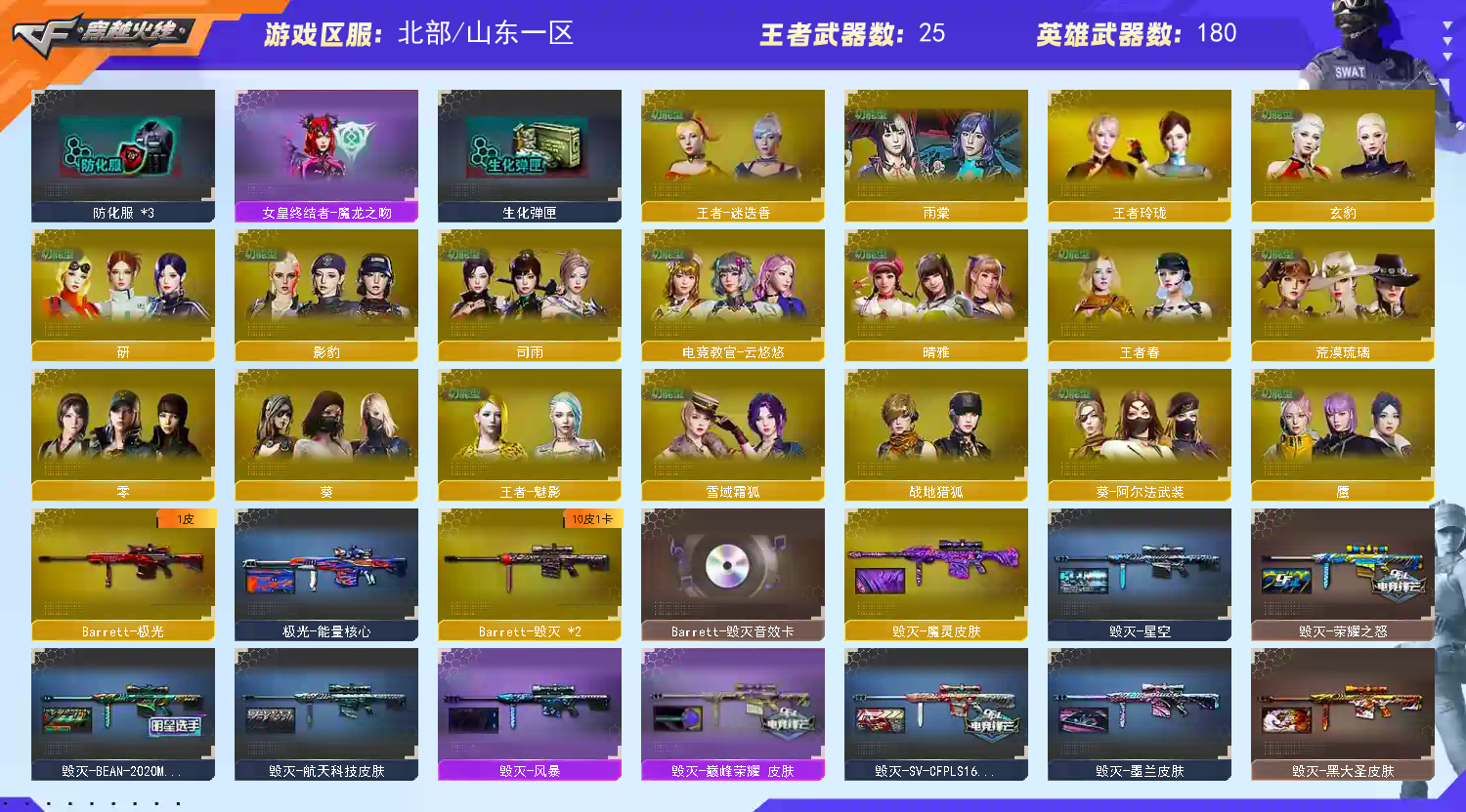首页 > 租号大厅 > 穿越火线 > 网通区/山东一区 > 生化爆破全装|神威莲华|神威天凌|炼狱泡泡象|斯泰尔灵狐|音效卡全|幻神8皮|裁决9皮|雷神14皮