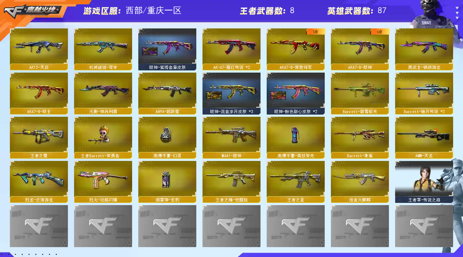 • 游戏区服:穿越火线 / 电信区 / 重庆一区