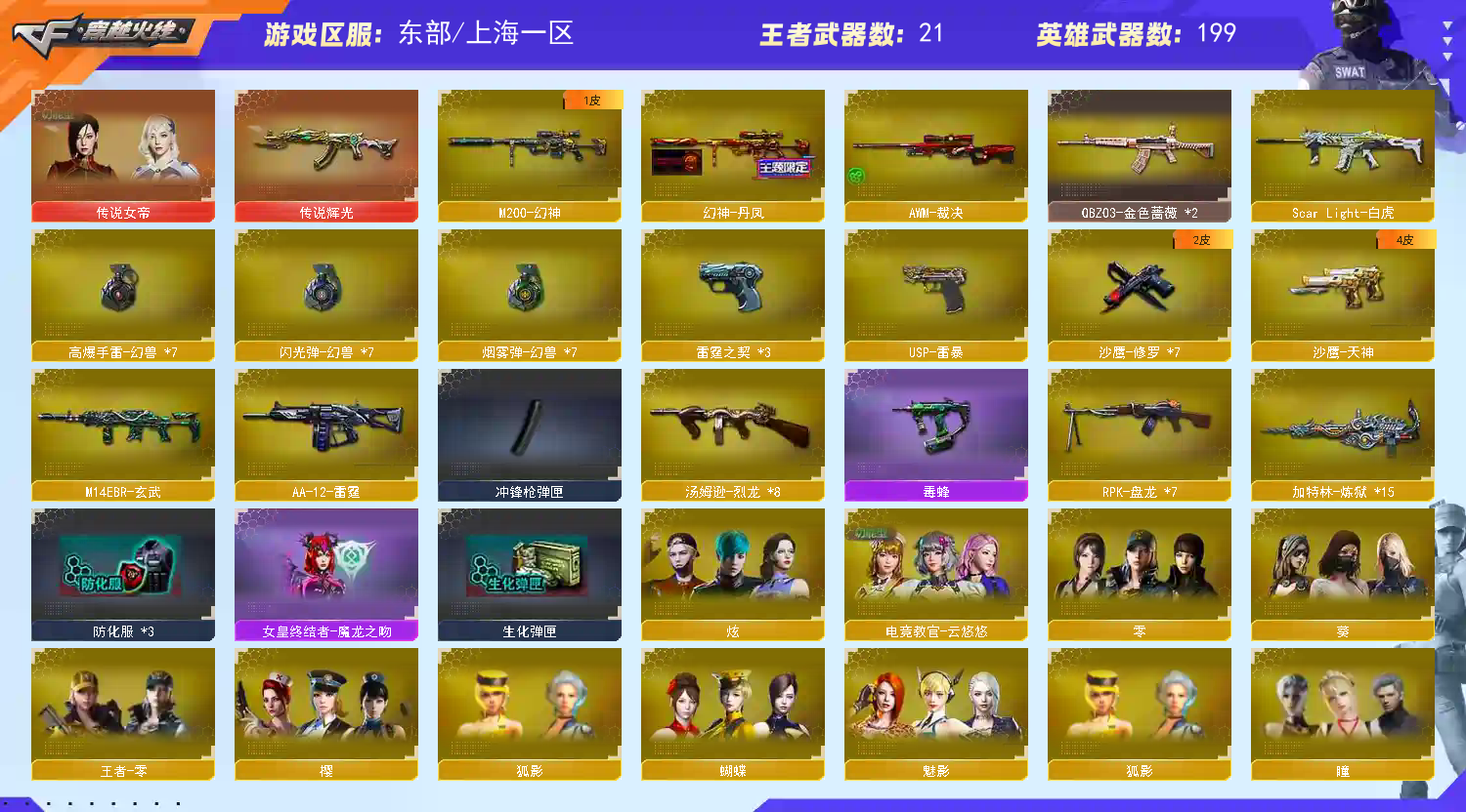 7套幻兽 传说女帝破空辉光白虎玄武如果开G或者DMA,必定根据租号玩支付方式实名信xi起诉租客,请勿引火上身,此账号价值已充超过10w,请勿因为一时兴起进牢房 传说女帝7套幻兽破空辉光白虎玄武幻神丹凤3雷霆COP雷暴usp7盘7烈朱雀青龙 欢迎选购,本店铺都是性价比及其高,欢迎点个收藏,以后不迷路,点开几百个各式各样的号任您选购,请大家看清楚了截图在租。有事欢迎留言,祝大家玩得高兴谢谢大家!幻神丹凤3雷霆COP雷暴usp7盘7烈朱雀青龙;USP-雷暴,传说女帝,电竞教官-云悠悠,RPK-盘龙,QBZ03-金色蔷薇,M200-幻神,Scar Light-白虎,