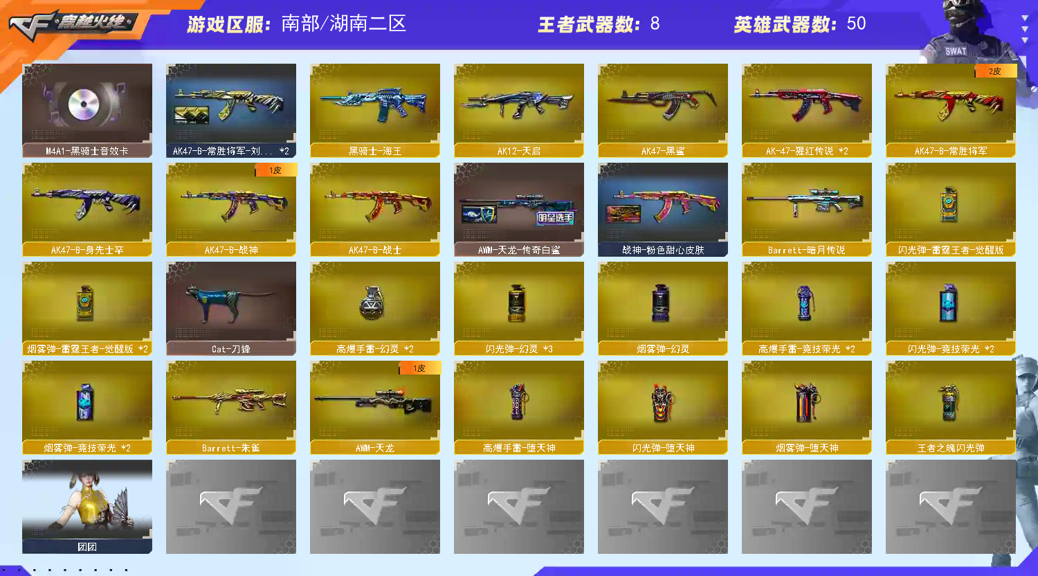 • 游戏区服:穿越火线 / 电信区 / 湖南二区