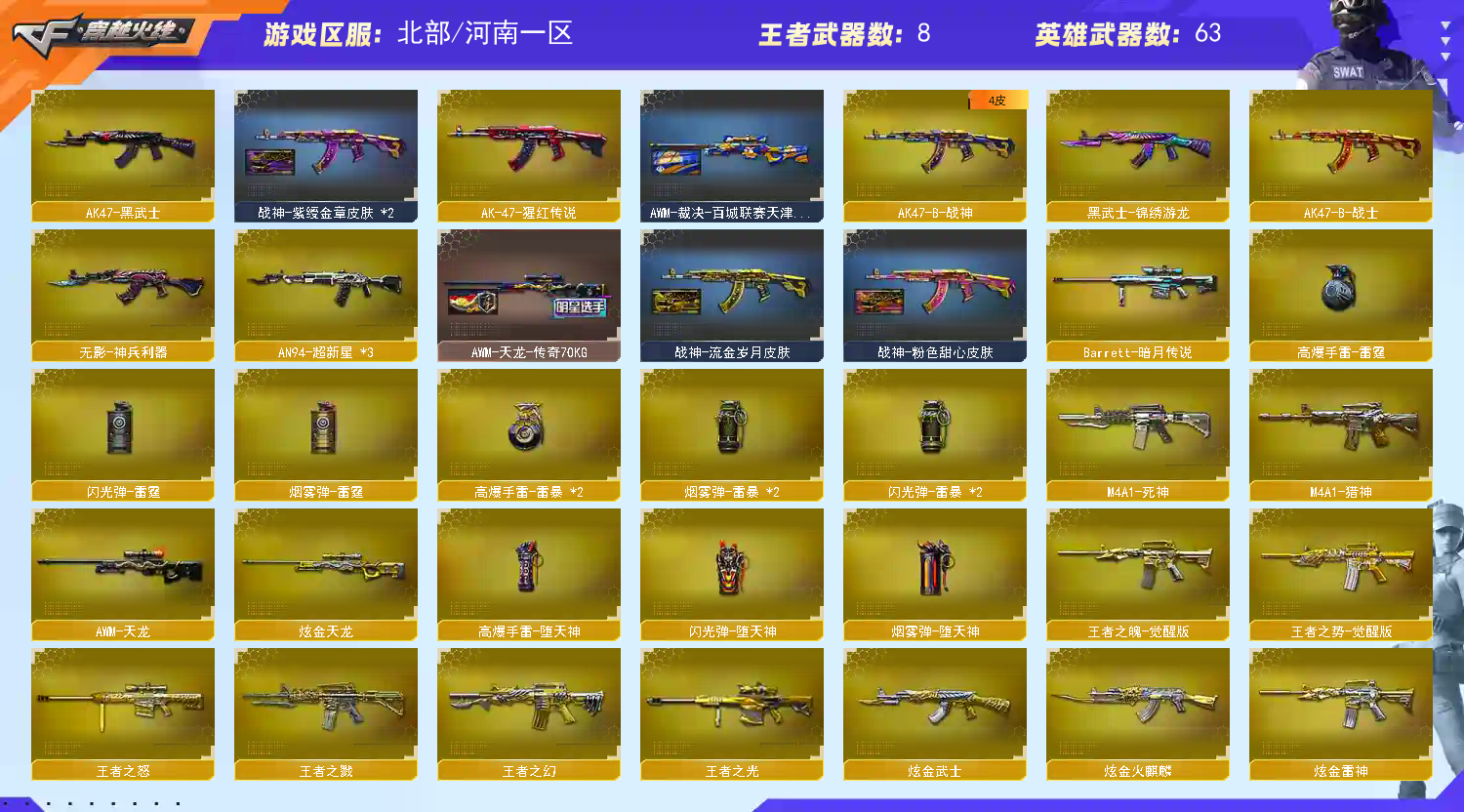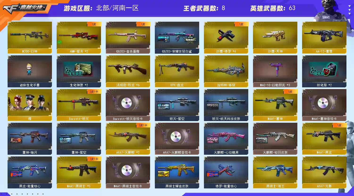 此账号和平台属于合作关系,已经备案。如果账号封号或者什么的,商户将会协助平台然后报警。 收藏好评!由于异地登录保护机制,部分客户在使用客户端自动上号时会出现密码错误,注意本号密码不会错误,请多尝试5-6次!本账号已经过虚拟财产-认1证。请素质租号,文明游戏,谢谢大家配合!!!;RPK-盘龙,QBZ03-金色蔷薇,M200-幻神,