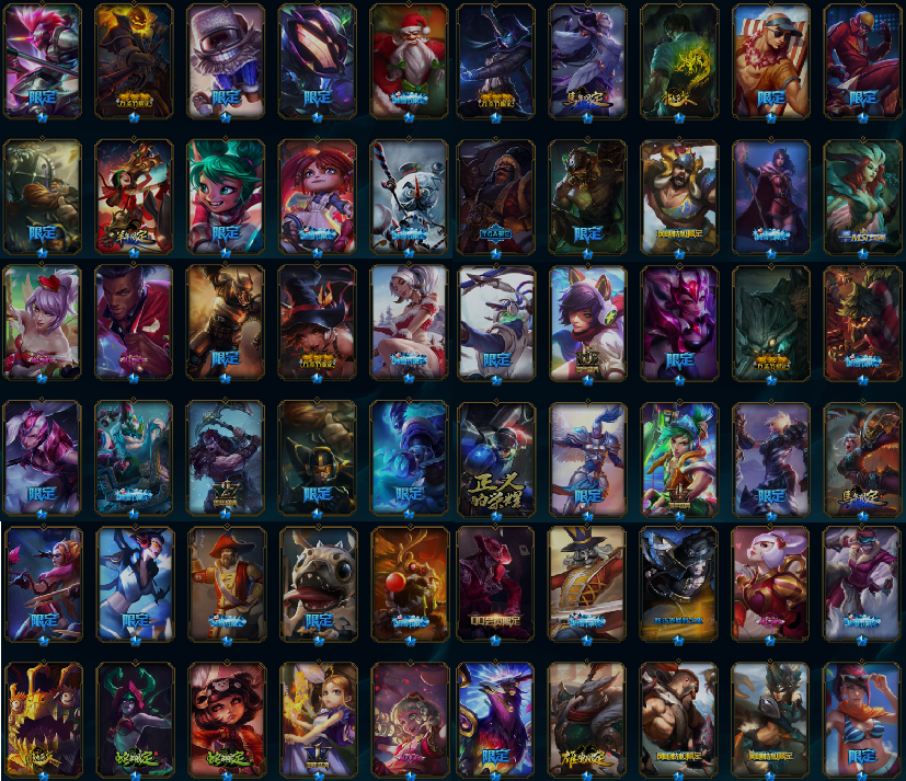 1529p-水晶之痕-48神话-204限定-83传说-龙瞎-海克斯薇恩-恐惧诺手-泳池派对全套-情人节套-冰雪节套-源计划套-冠军皮肤套-超多年限具体游戏见吧