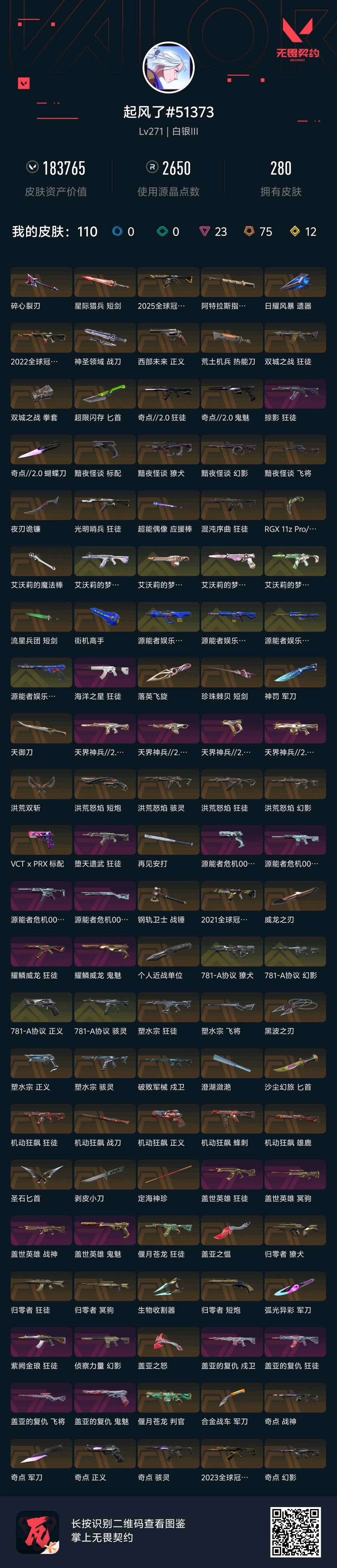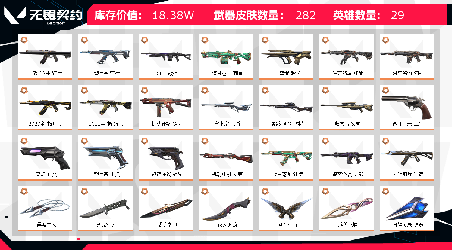 • 皮肤资产价值: 183765