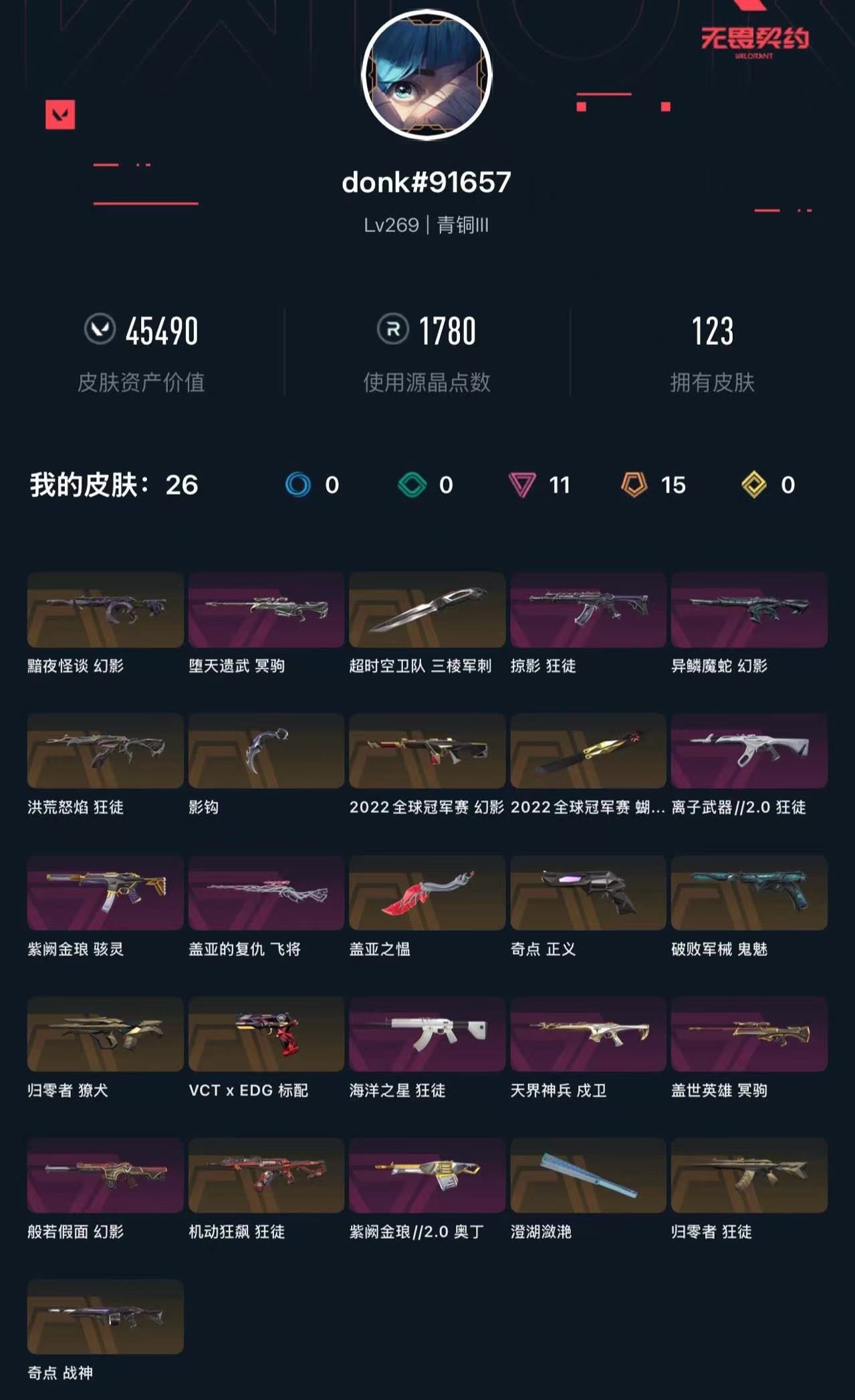 • 皮肤资产价值: 45490