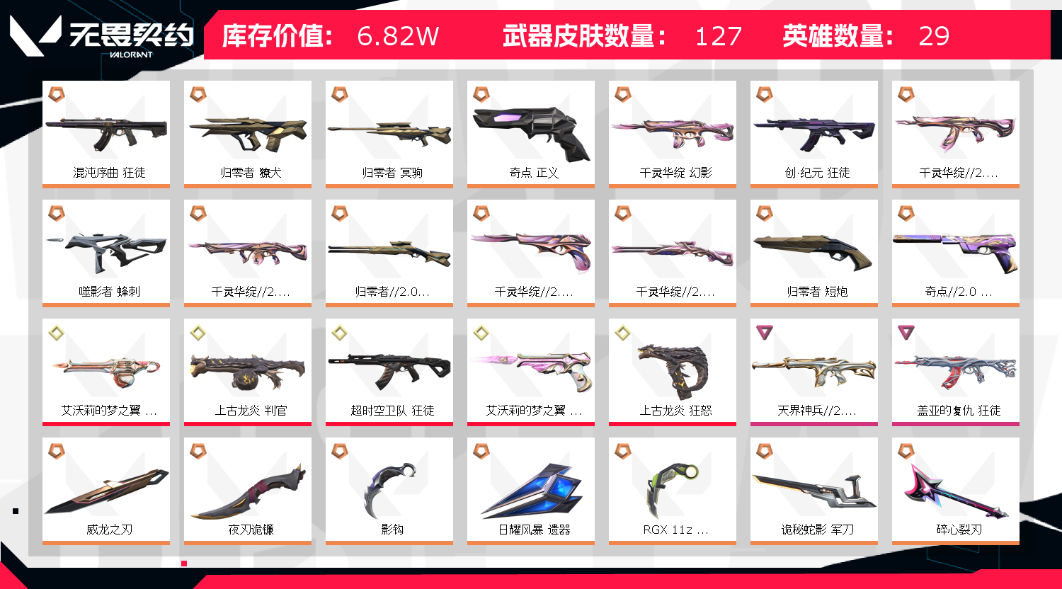 首页 > 租号大厅 > 无畏契约-wegame > wegame/wegame > 冻结秒解⚡7w库颗秒刀千灵2套⚡ak:超时空盖亚混沌日冕堕天创纪元⚡影钩显卡爪夜刃威龙艾沃莉天界影刃