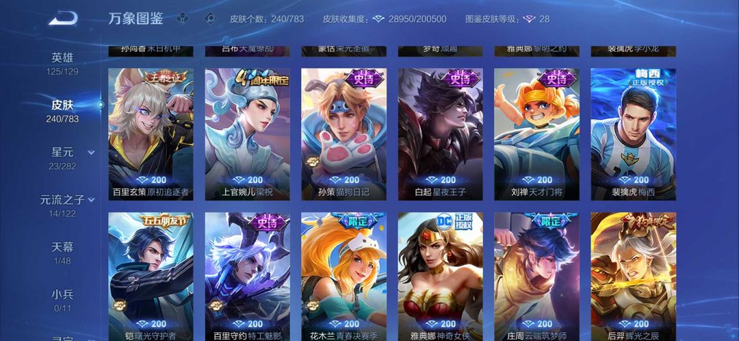 钻石可排位李白典藏至尊宝梅西天魔缭乱武陵仙君凤求凰