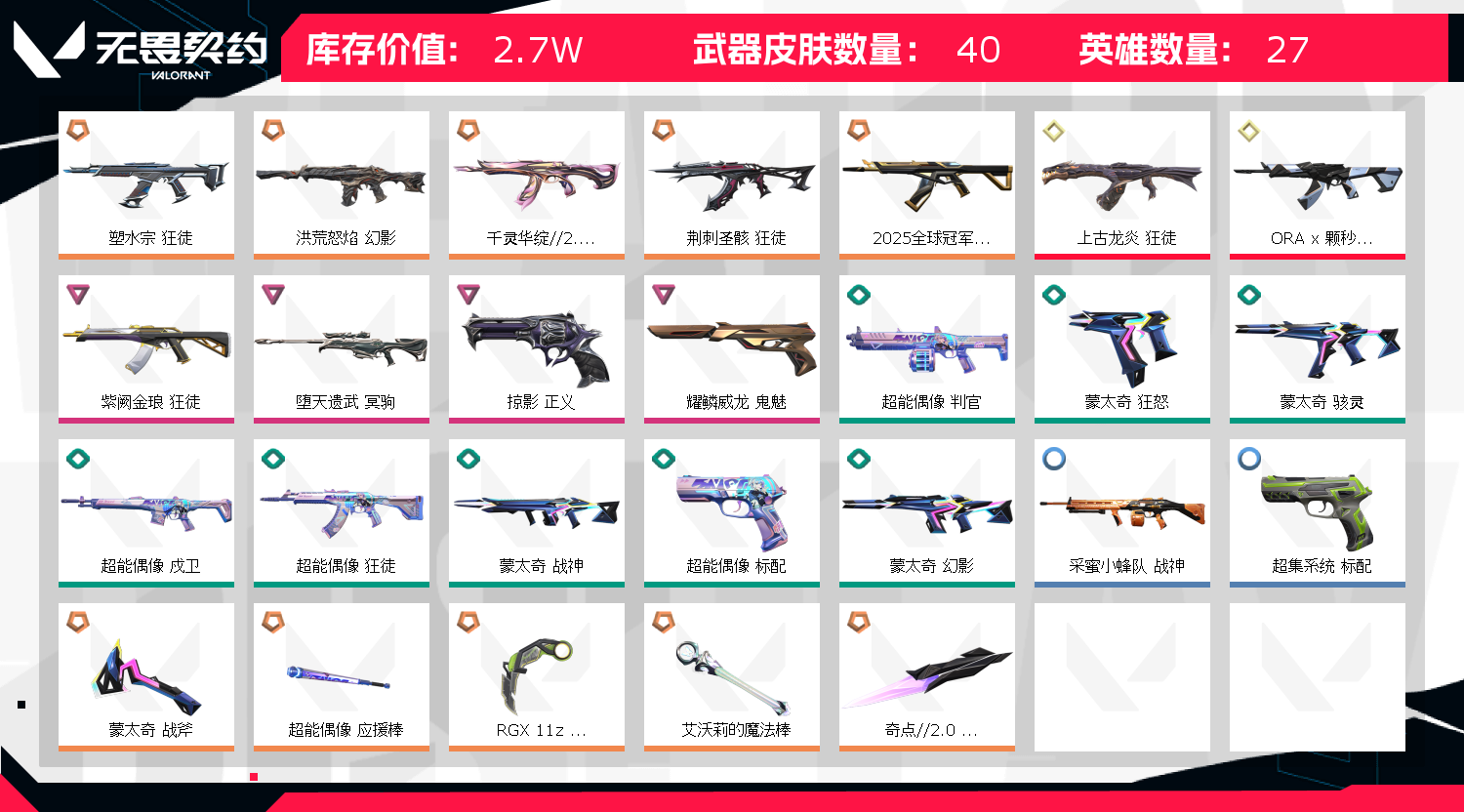 • 皮肤资产价值: 27030